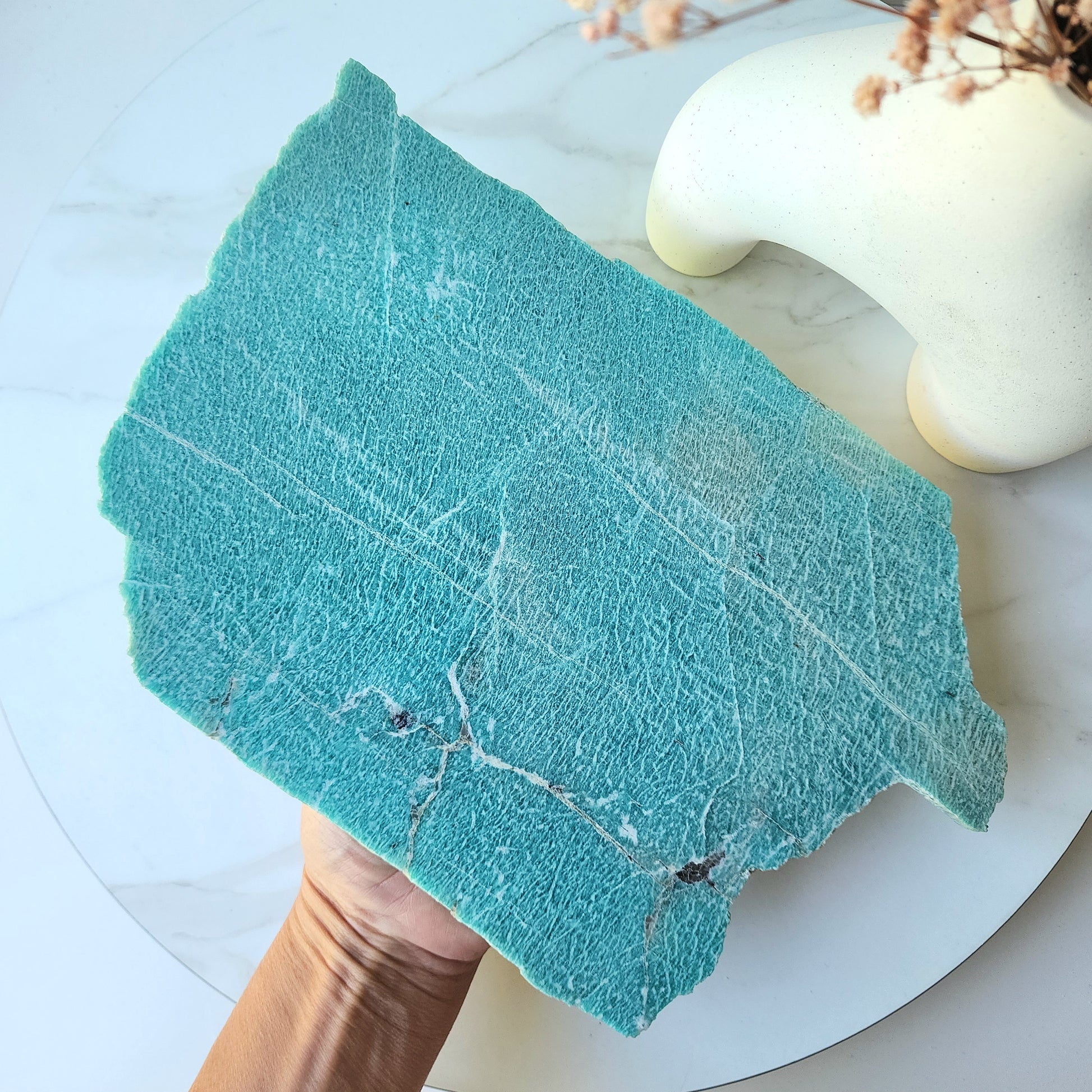 Amazonite, known as the Stone of Courage and Truth, allows for self-reflection and the realization of personal truths and values. It encourages overcoming the fear of being judged or facing confrontation..