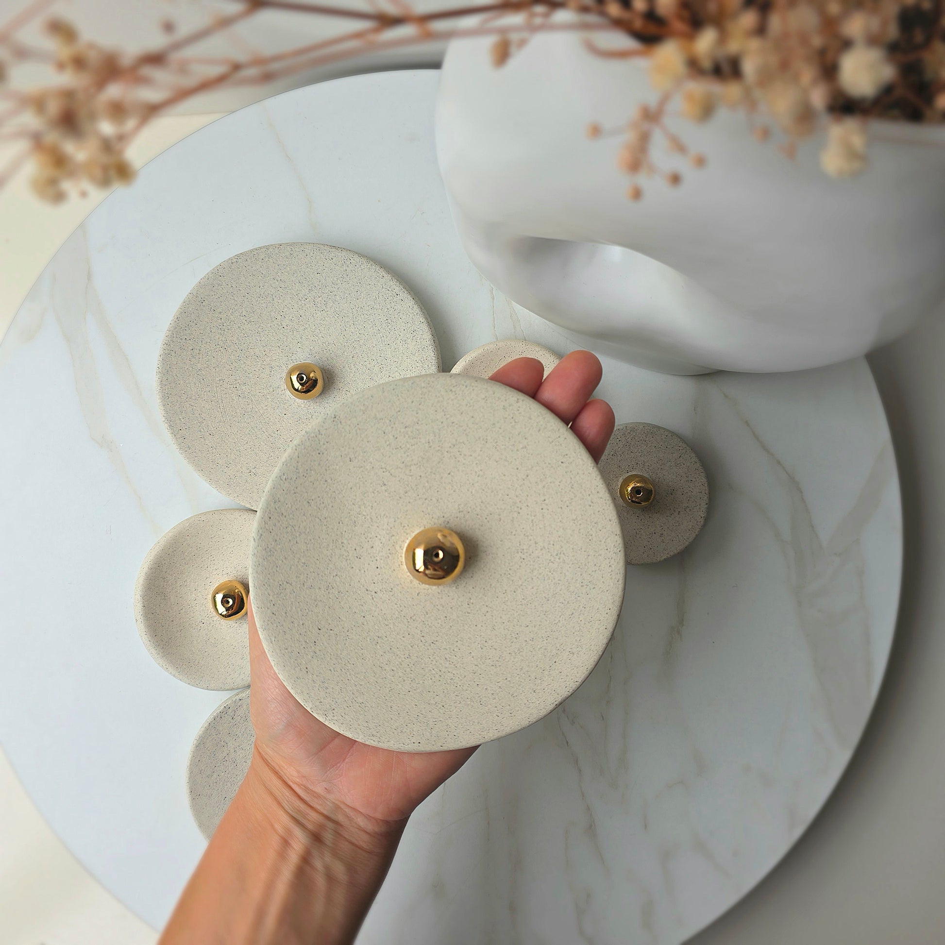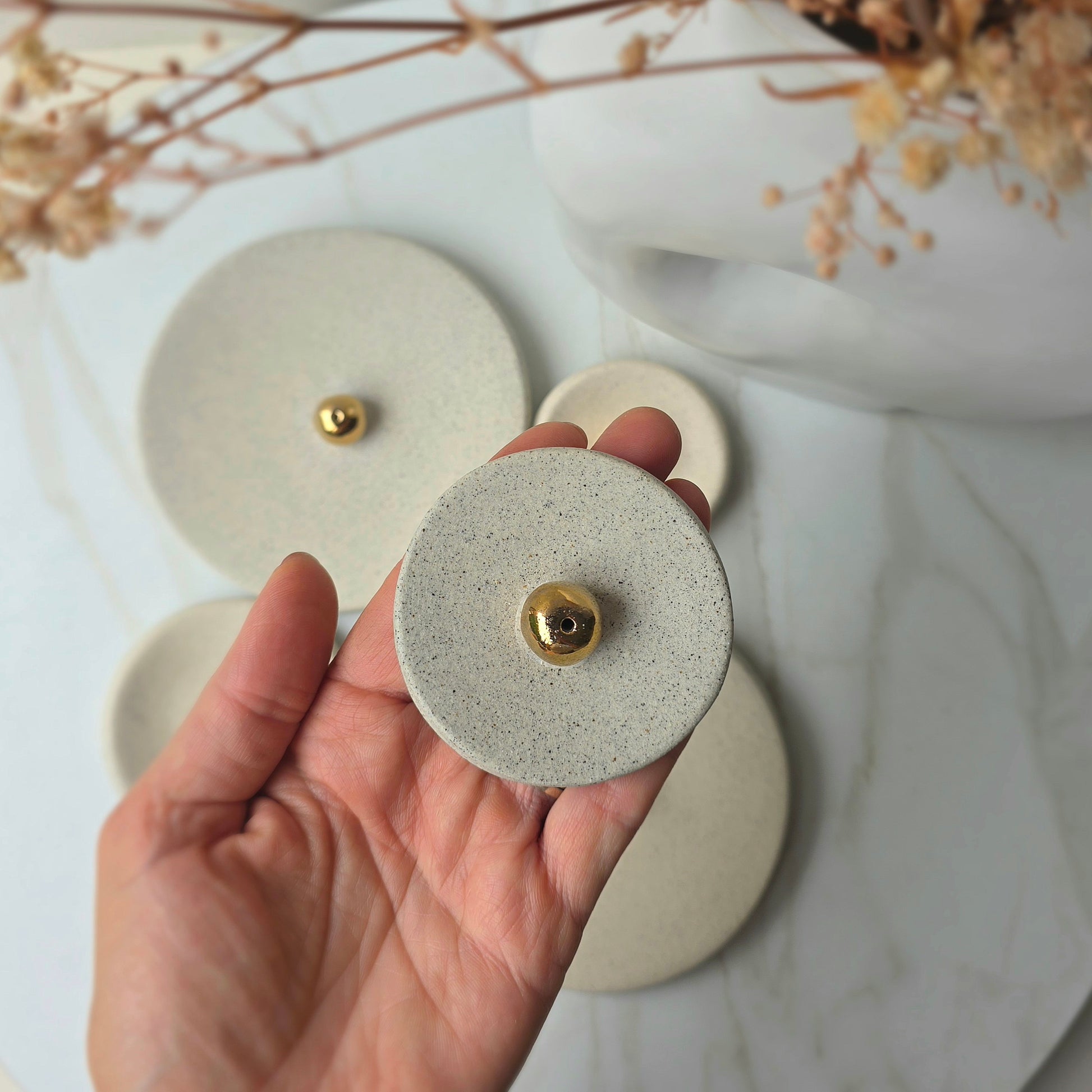 Finished with a luxurious gold accent sphere, this incense holder blends minimalism with elegance, making it the perfect statement piece for your altar, living space, bedroom, or meditation corner.