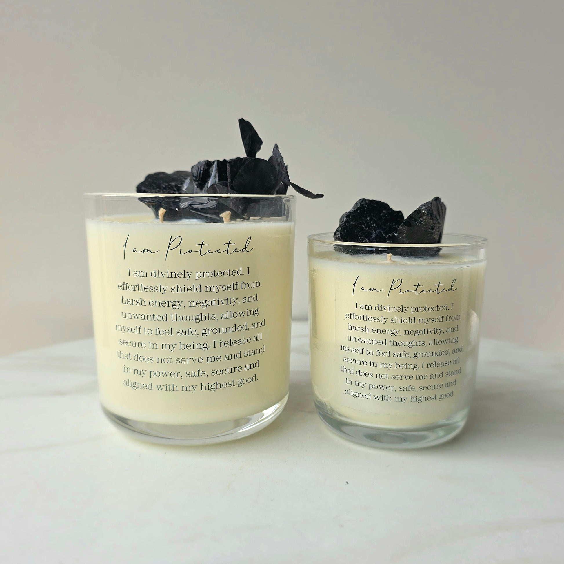 Each crystal is chosen intuitively for you, making every candle unique. Please note that variations in color, shape, and size may occur between batches.