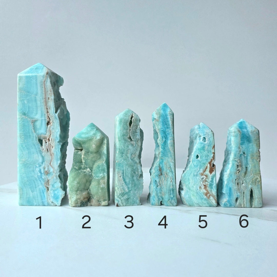 Blue Aragonite heightens emotional awareness, fostering empathy and compassion for both ourselves and others. It encourages the release of fear surrounding "negative" emotions like grief or anger, gently reminding us that every emotion and life experience holds valuable lessons and deeper truths.
