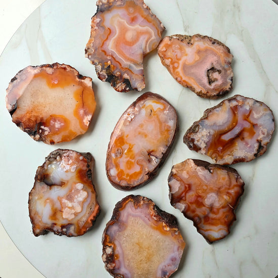 Carnelian and Flower Agate are powerful stones for motivation and inner growth. Carnelian, with its warm, fiery energy, boosts confidence, creativity, and courage while dispelling fear and self-doubt. Flower Agate, a stone of transformation, nurtures emotional healing, fosters personal growth, and inspires new beginnings. Together, they create a harmonious balance of strength and gentle encouragement, making them ideal for those seeking empowerment and positive change.