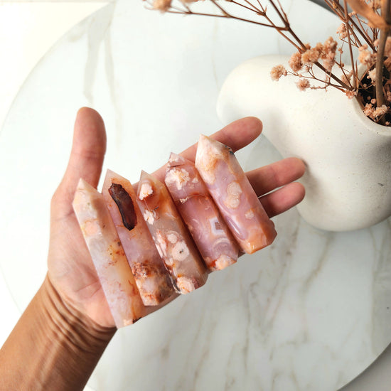 Carnelian and Flower Agate are powerful stones for motivation and inner growth. Carnelian, with its warm, fiery energy, boosts confidence, creativity, and courage while dispelling fear and self-doubt. Flower Agate, a stone of transformation, nurtures emotional healing, fosters personal growth, and inspires new beginnings. Together, they create a harmonious balance of strength and gentle encouragement, making them ideal for those seeking empowerment and positive change.