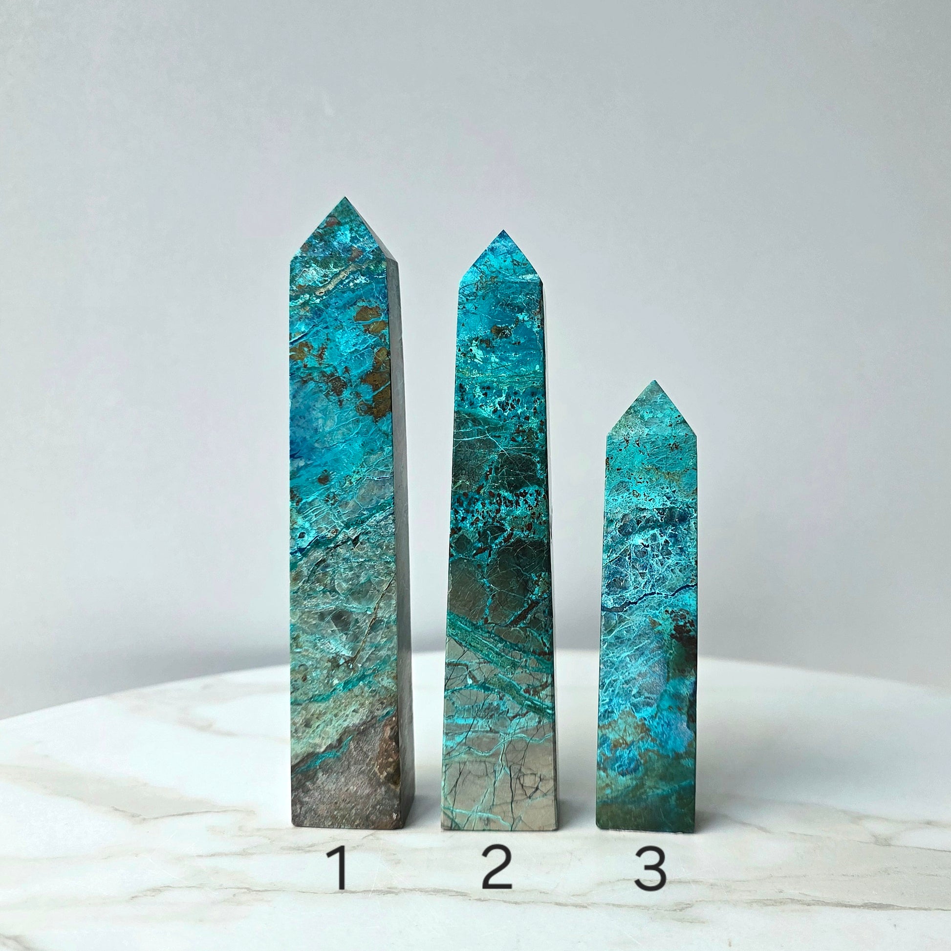 This beautiful stone is also deeply connected to the Throat and Heart Chakras, opening pathways for honest dialogue and heartfelt connections. Whether displayed in your home, carried with you, or used in spiritual practices, Chrysocolla brings a peaceful energy that nurtures harmony, creativity, and emotional strength.