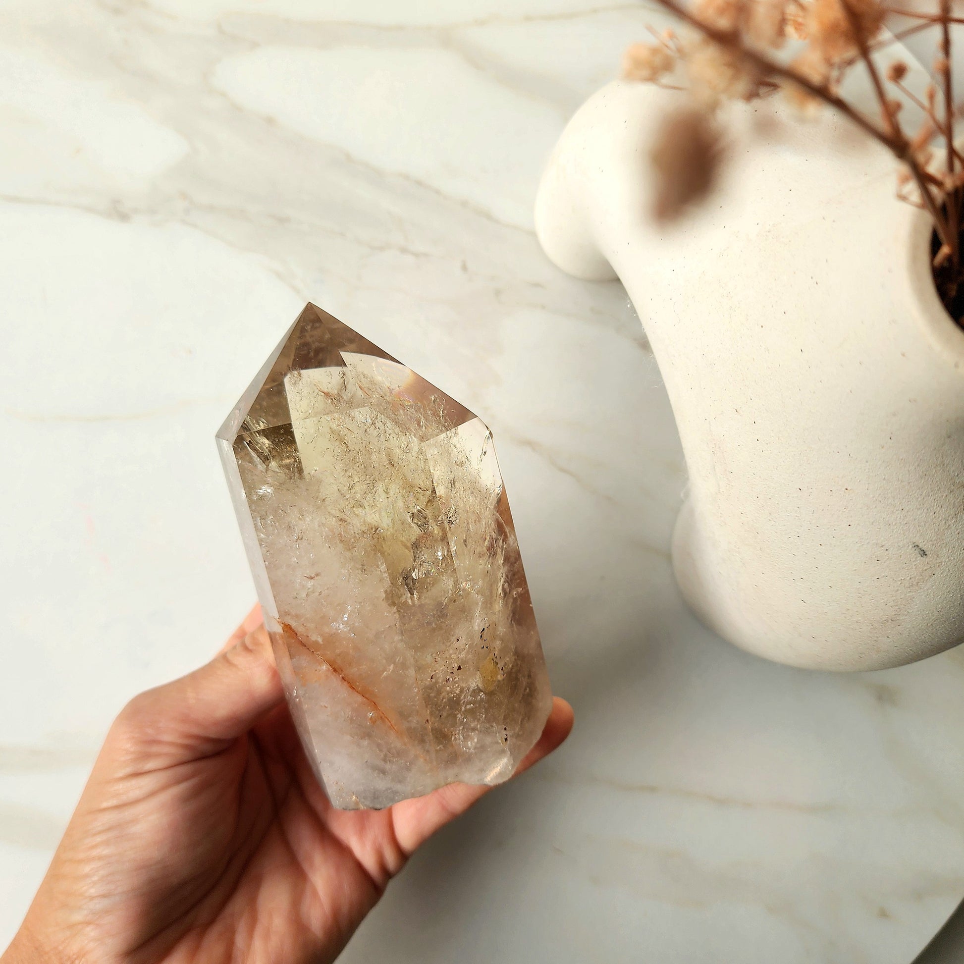 Citrine is known for its cleansing and regenerative properties, as it harnesses the energy of the sun. Its warm and energizing attributes promote creativity and abundance, making it a powerful manifestation tool for attracting wealth, success, and all good things.