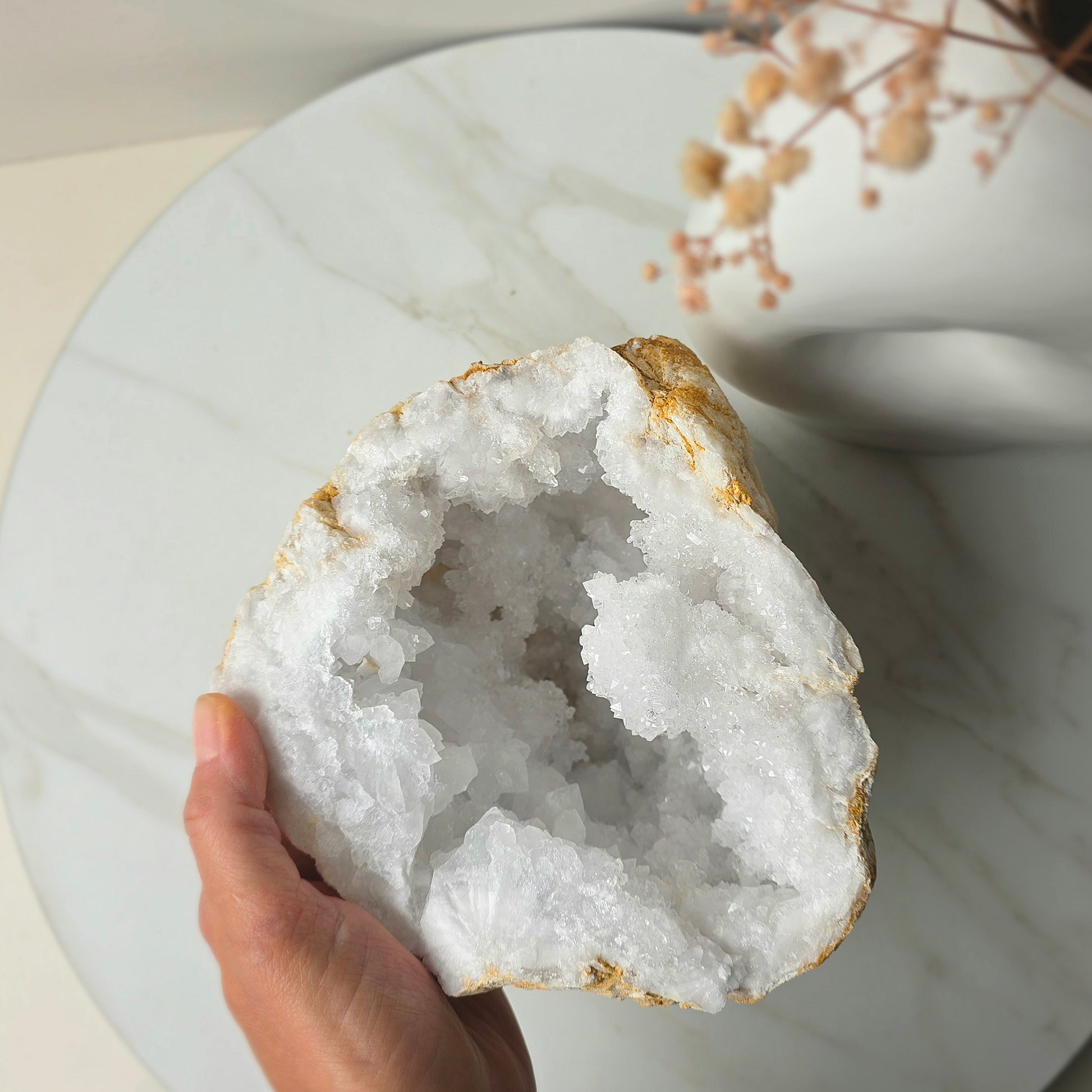 Moroccan Clear Quartz Geode — Radiant Energy for Your Home