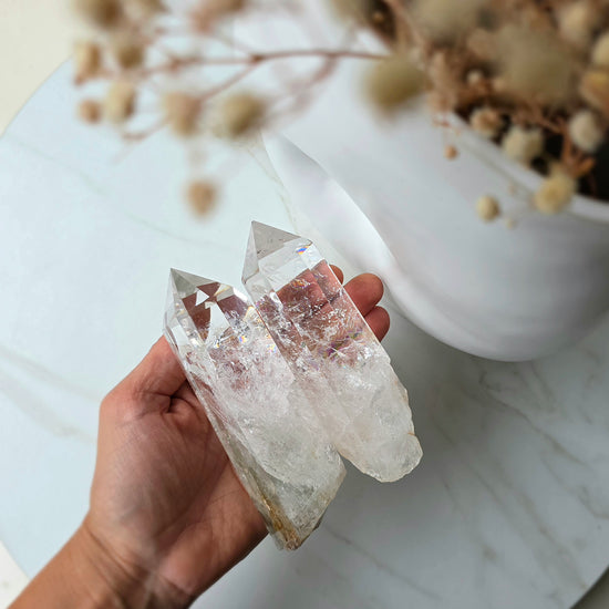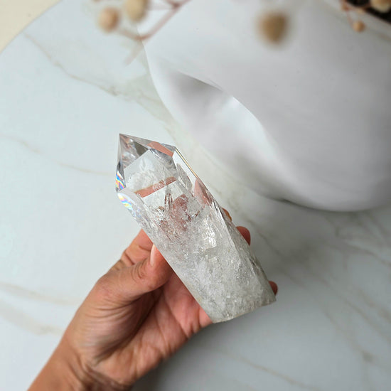 Pure, radiant, and endlessly powerful, Clear Quartz is known as the Master Healer of the crystal world. Celebrated for its crystal-clear transparency and high vibrational energy, Clear Quartz amplifies intention, enhances clarity, and harmonises mind, body, and spirit.