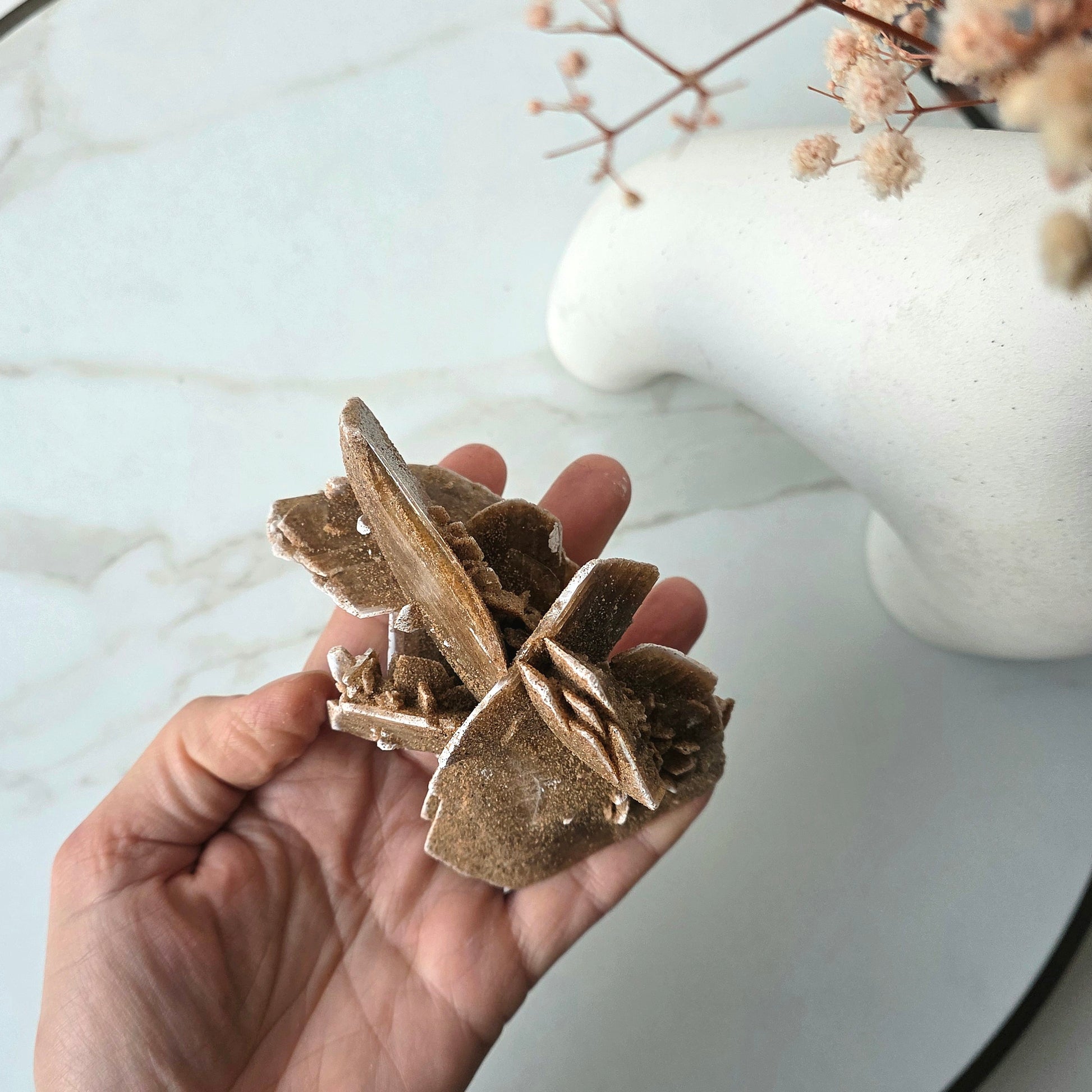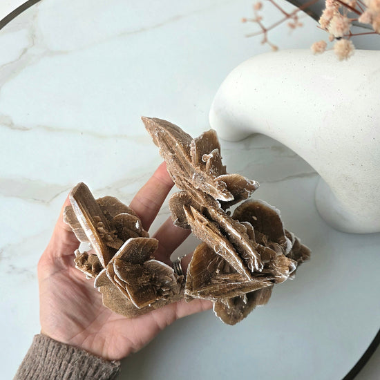 Desert Rose Crystals, derived from the selenite varieties, is often referred to as the "Clarity Stone," connecting users to their higher selves and boosting intuitive ability. Along with protective properties, it is said to increase self-confidence and self-worth.