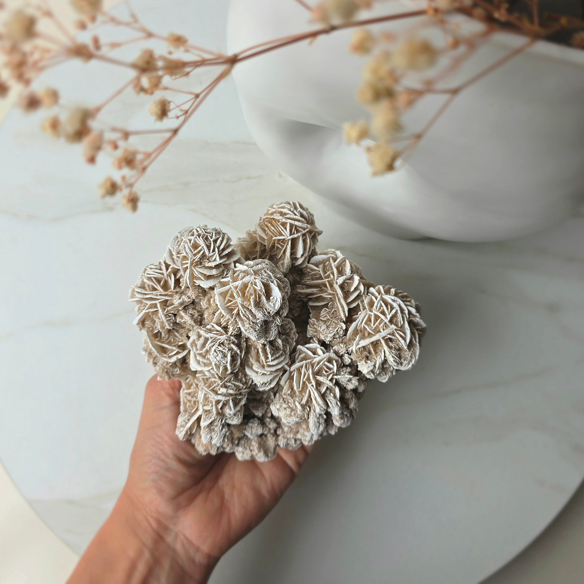 Formed naturally by wind, sand, and time, the Desert Rose Crystal is a stunning gypsum or barite formation shaped like a blooming stone rose. With its soft sandy tones and layered petals, this unique crystal symbolises resilience, protection, and inner clarity—making it both a meaningful spiritual tool and a striking natural décor piece.