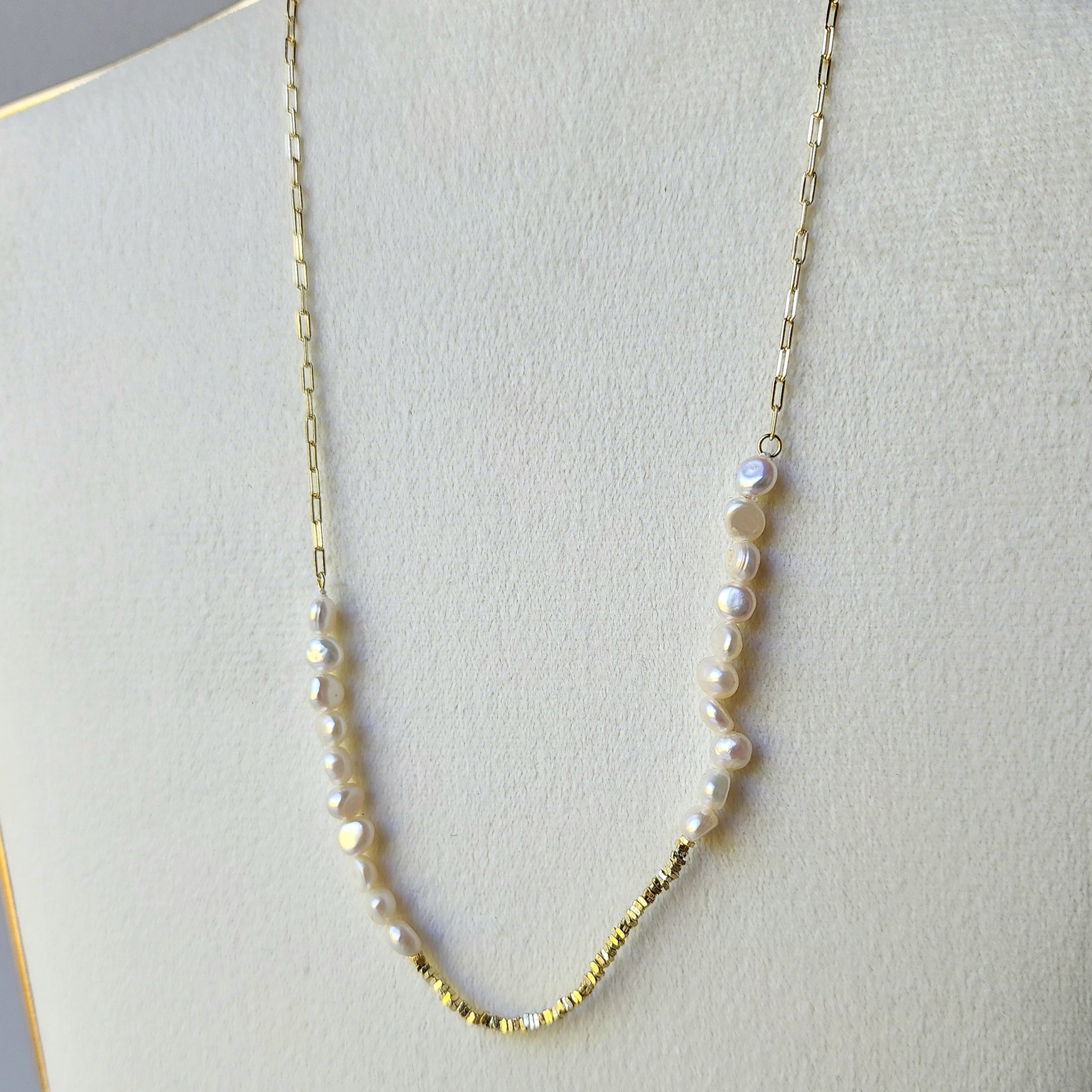 Fresh water rice pearl sterling silver necklace gold with extension clasp