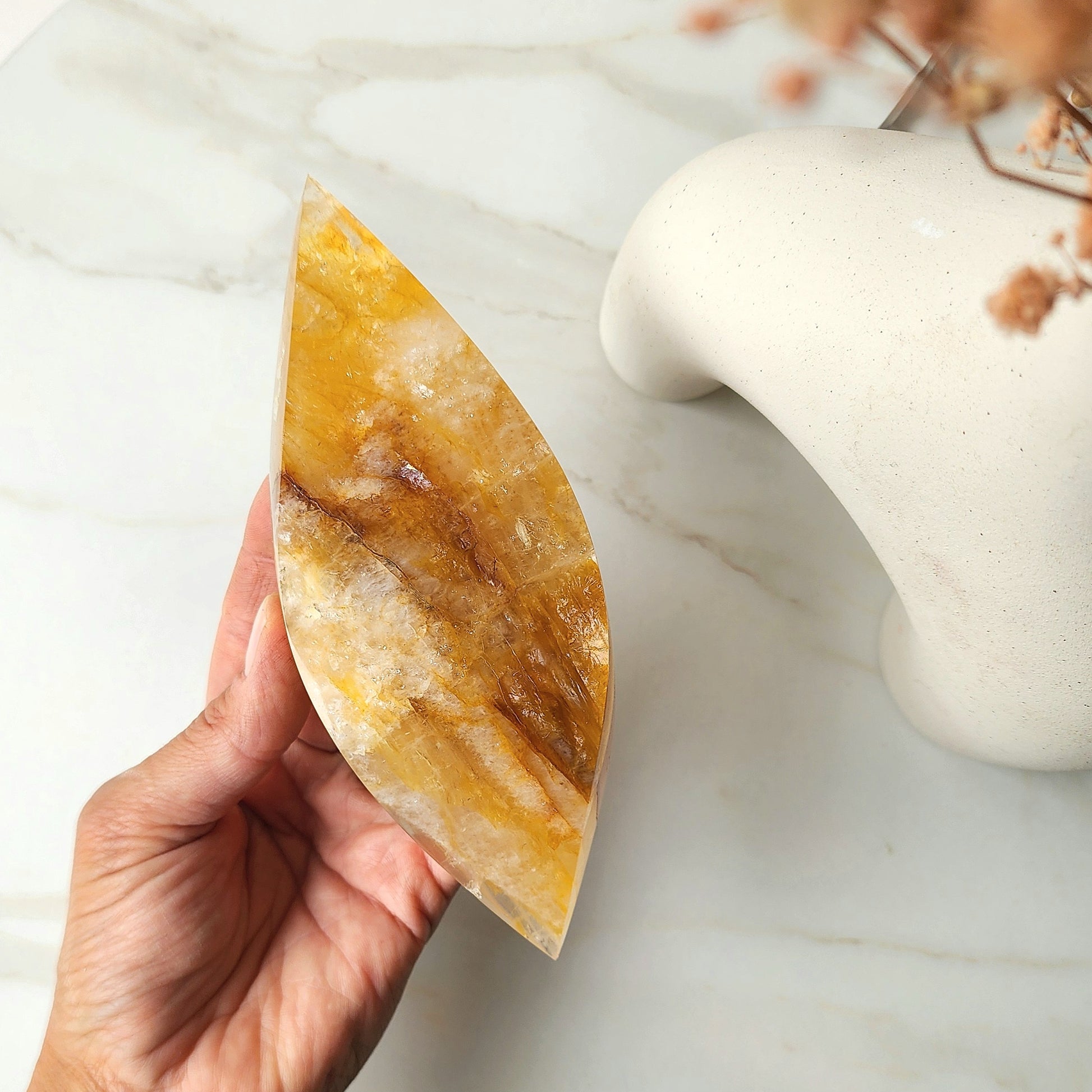Harness the powerful energy of Golden Healer to align your chakras and enhance your mind-body connection. It is know to help you manifest desires and connect with your higher self.