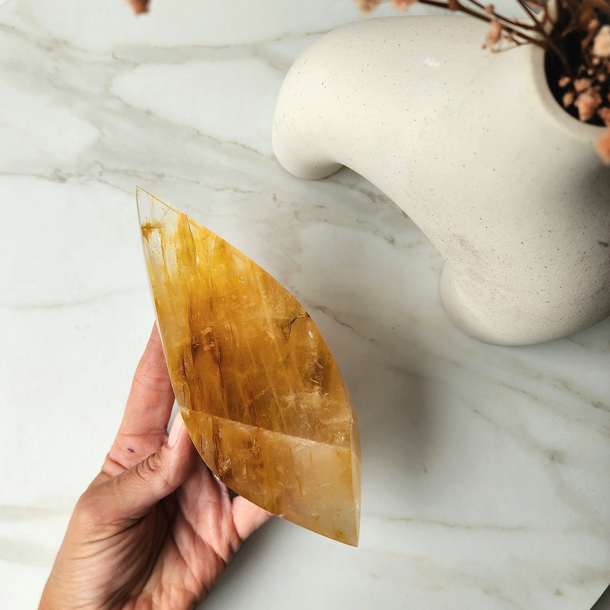 Harness the powerful energy of Golden Healer to align your chakras and enhance your mind-body connection. It is know to help you manifest desires and connect with your higher self.
