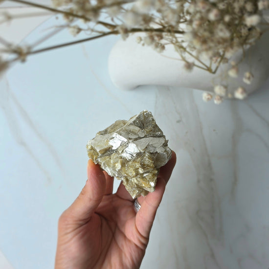 Often associated with personal power and self-worth, Golden Mica activates the solar plexus chakra, encouraging bold expression and confident action. Its radiant sheen mirrors your own inner brilliance, reminding you that your presence is meant to be seen and valued.