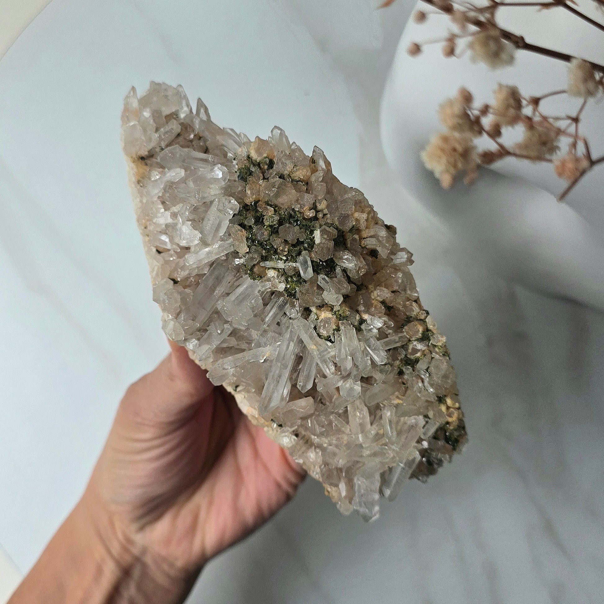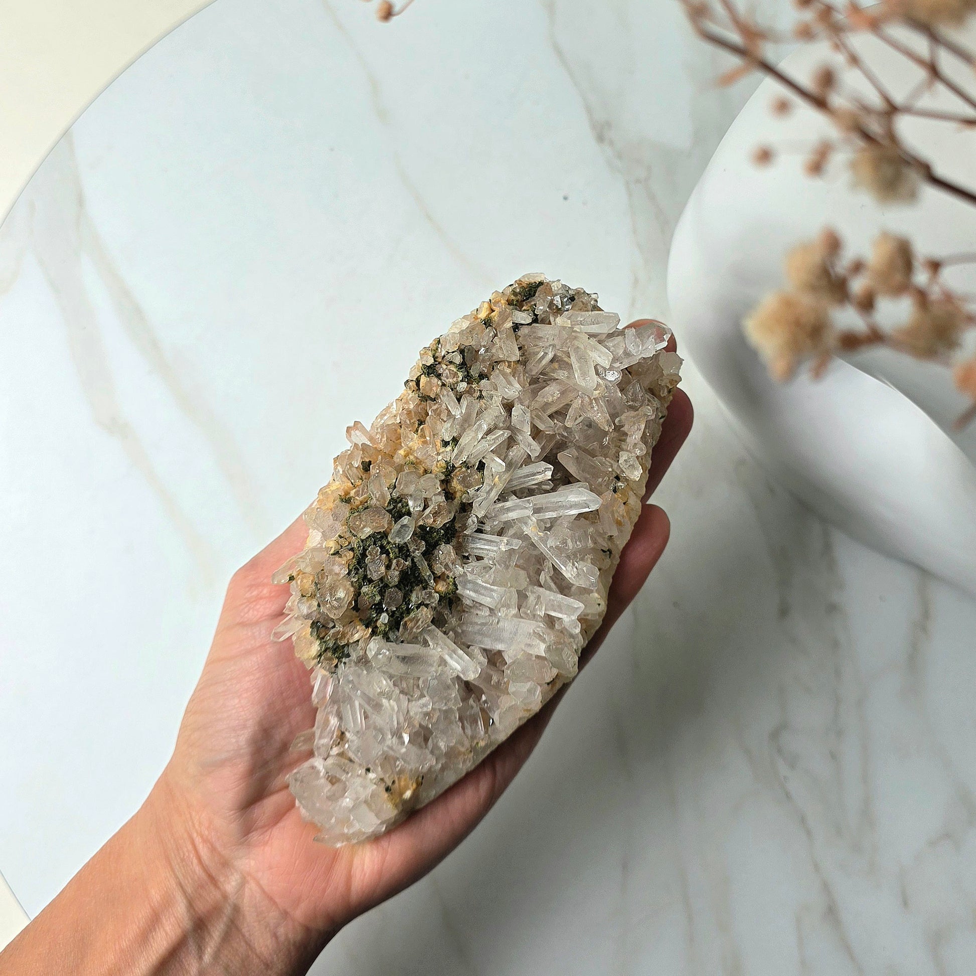 Perfect for manifestation, heart healing, and spiritual clarity, Himalayan Quartz with Epidote is a breathtaking piece of nature’s alchemy — one that supports both your highest self and your rooted, authentic energy.