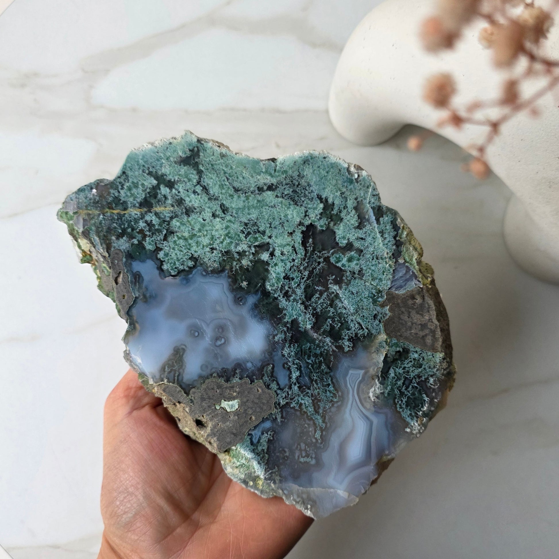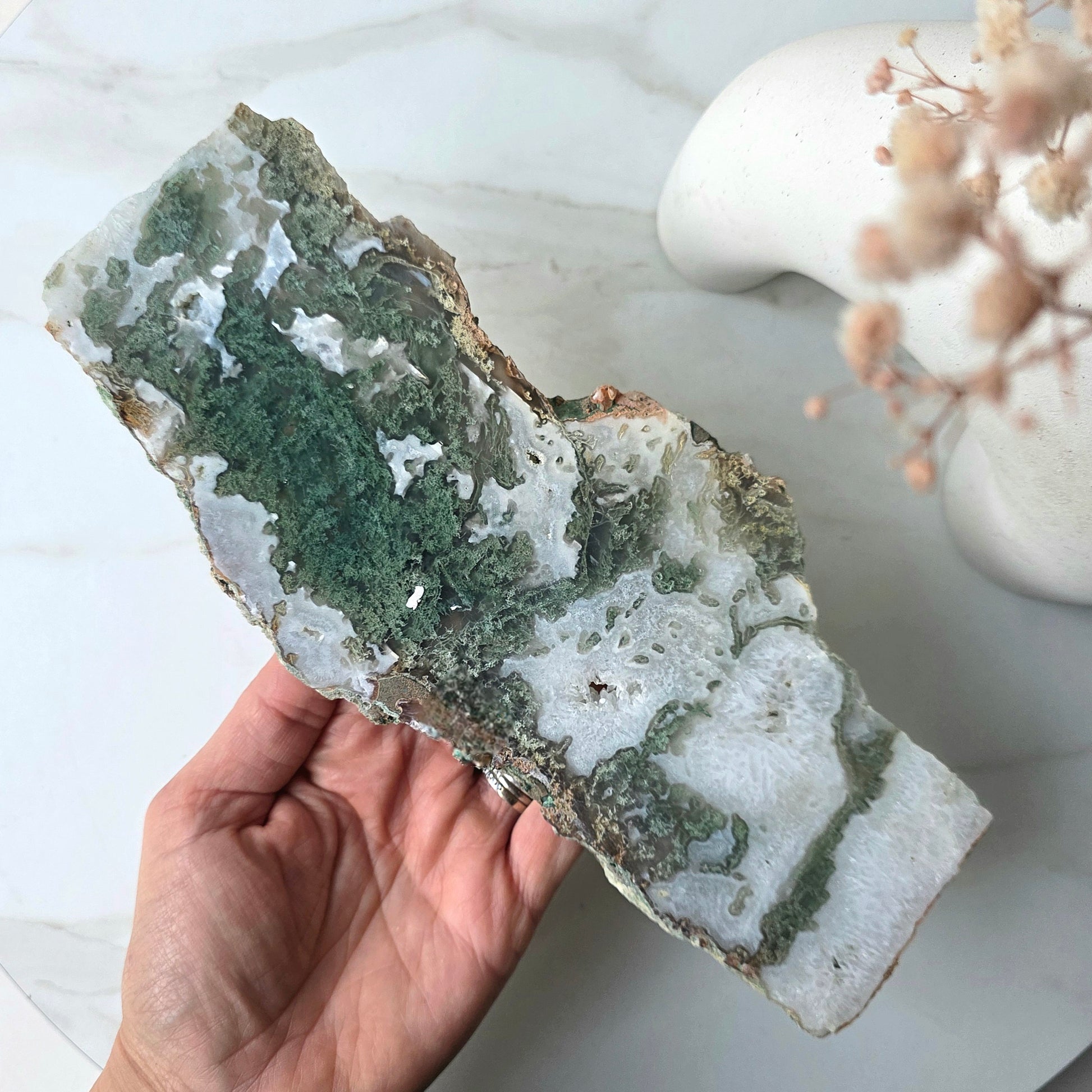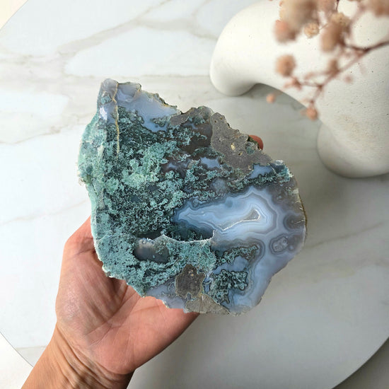 Moss Agate is recognized as the stone of new beginnings. It revitalizes the spirit and enhances your ability to appreciate beauty in everything around you. It draws abundance in prosperity and boosts self-confidence, encourages self-expression, emotional balance, and instills trust and hope.