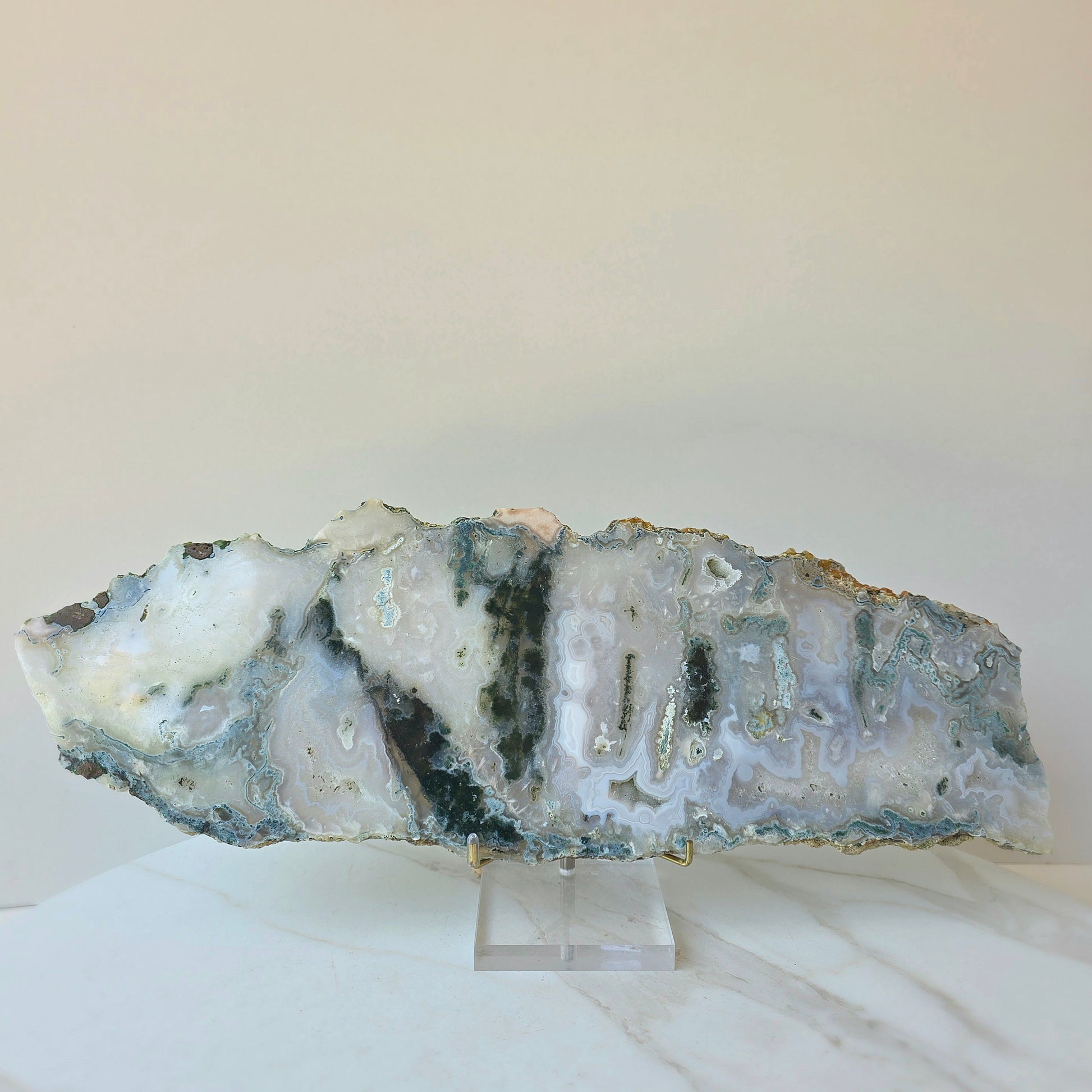 Each piece is completely unique, with organic patterns that resemble forest landscapes and lush greenery, making Green Moss Agate a favourite for those drawn to earthy, nurturing energy and natural beauty.