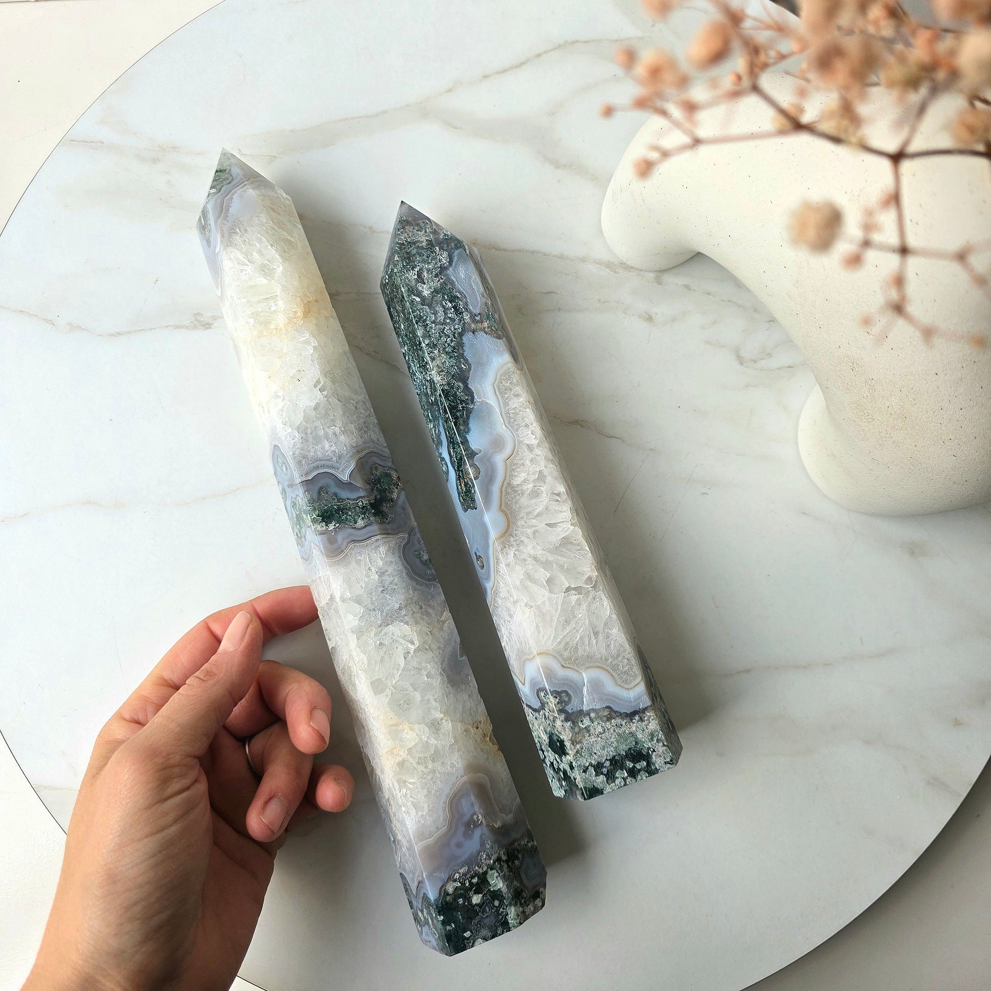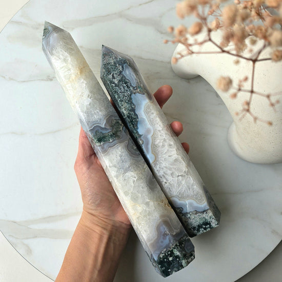 Moss Agate is recognized as the stone of new beginnings. It revitalizes the spirit and enhances your ability to appreciate beauty in everything around you. It draws abundance in prosperity and boosts self-confidence, encourages self-expression, emotional balance, and instills trust and hope.