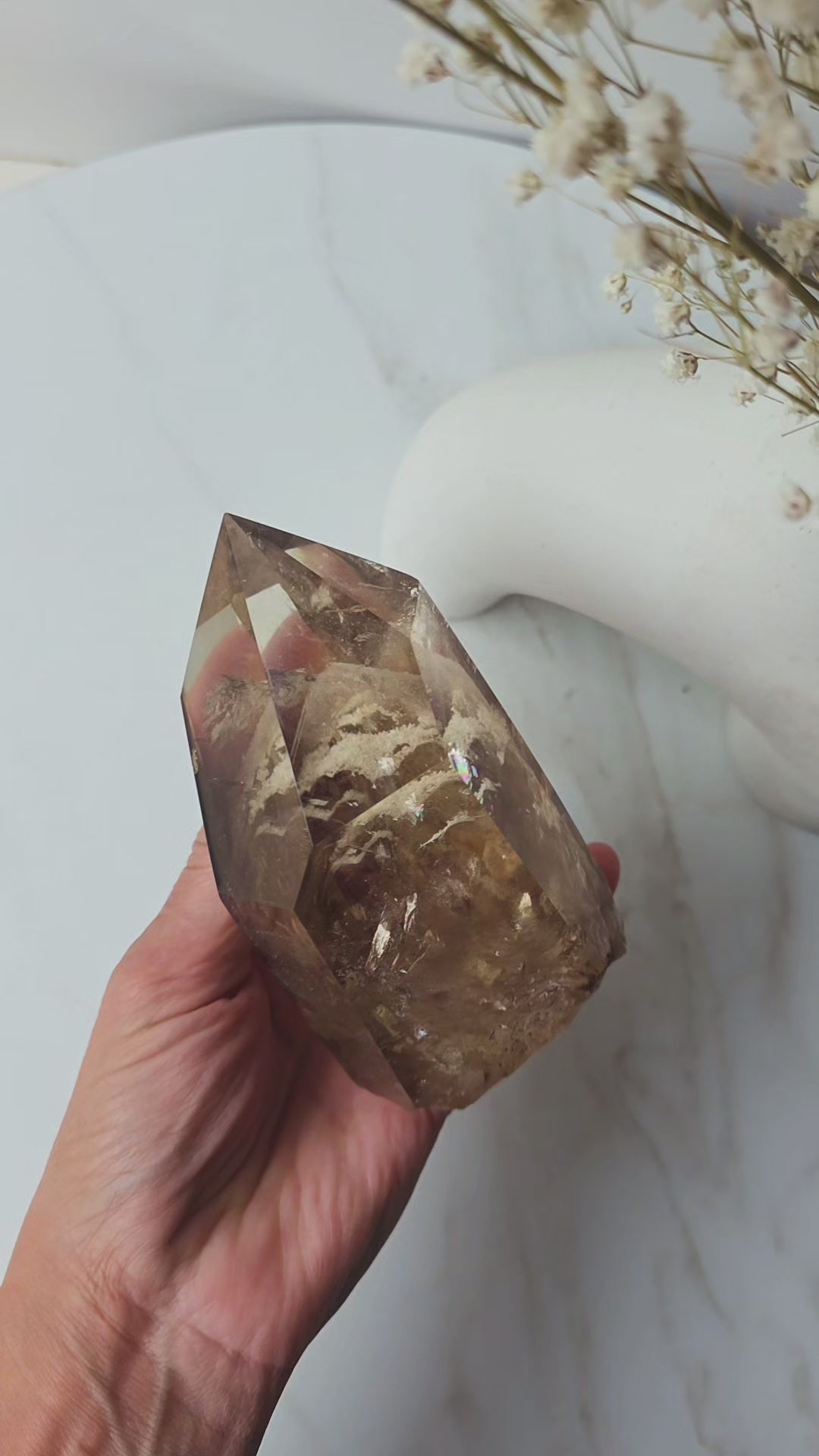 The presence of phantom inclusions — visible internal growth layers captured within the crystal — symbolises transformation, evolution, and the beauty of every stage of your journey. Each phantom marks a pause in growth before expansion continued, making this piece a profound reminder that progress is not always linear — yet always purposeful.