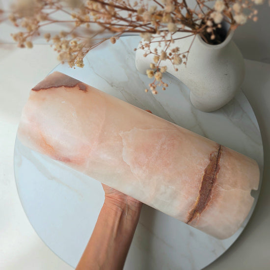 Perfect as a statement piece for your living room, bedroom, or meditation space, this onyx crystal lamp not only elevates your home decor but also infuses it with serene, protective energy. Each piece is unique, showcasing the Earth’s artistry in every natural pattern and hue.