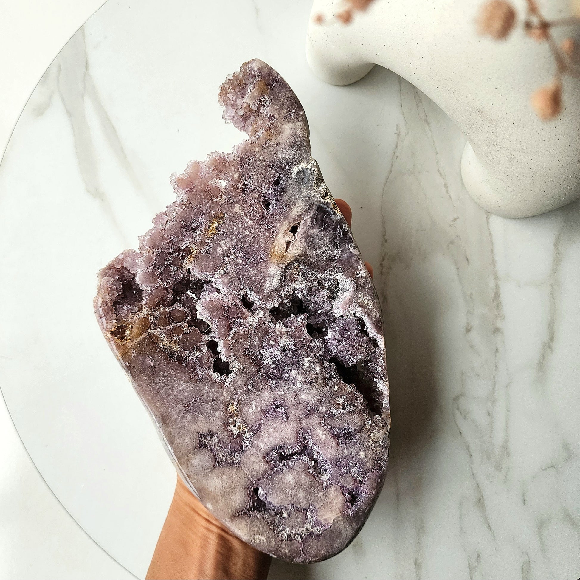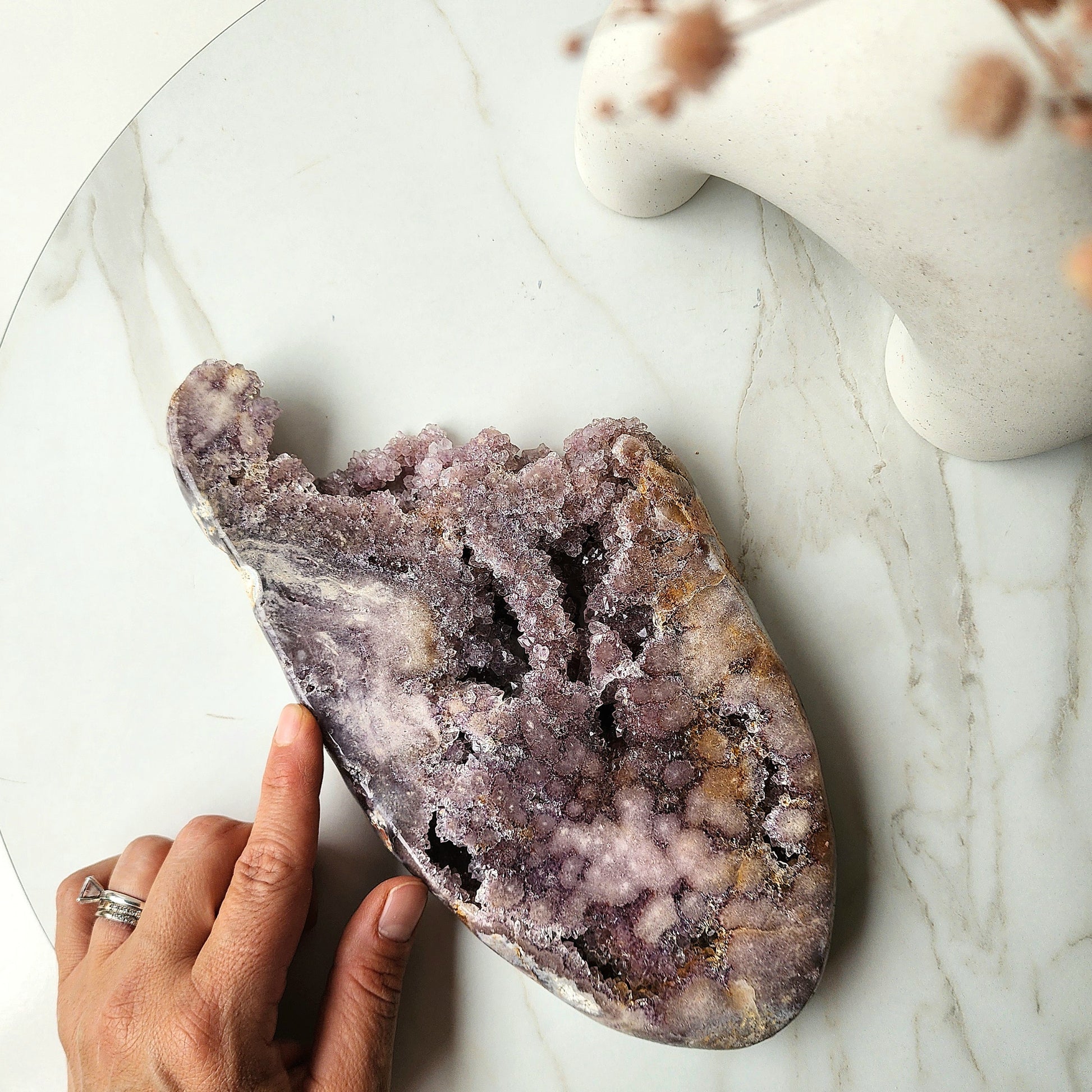 Pink Amethyst is known for its ability to fill individuals with warm, loving energy. This stone is commonly used to purify energy from both spaces and people, while also promoting emotional balance and instilling a sense of calm, understanding, trust, and grace. Additionally, Pink Amethyst is believed to enhance intuition, increase clarity, and aid in the recollection of lucid dreaming..