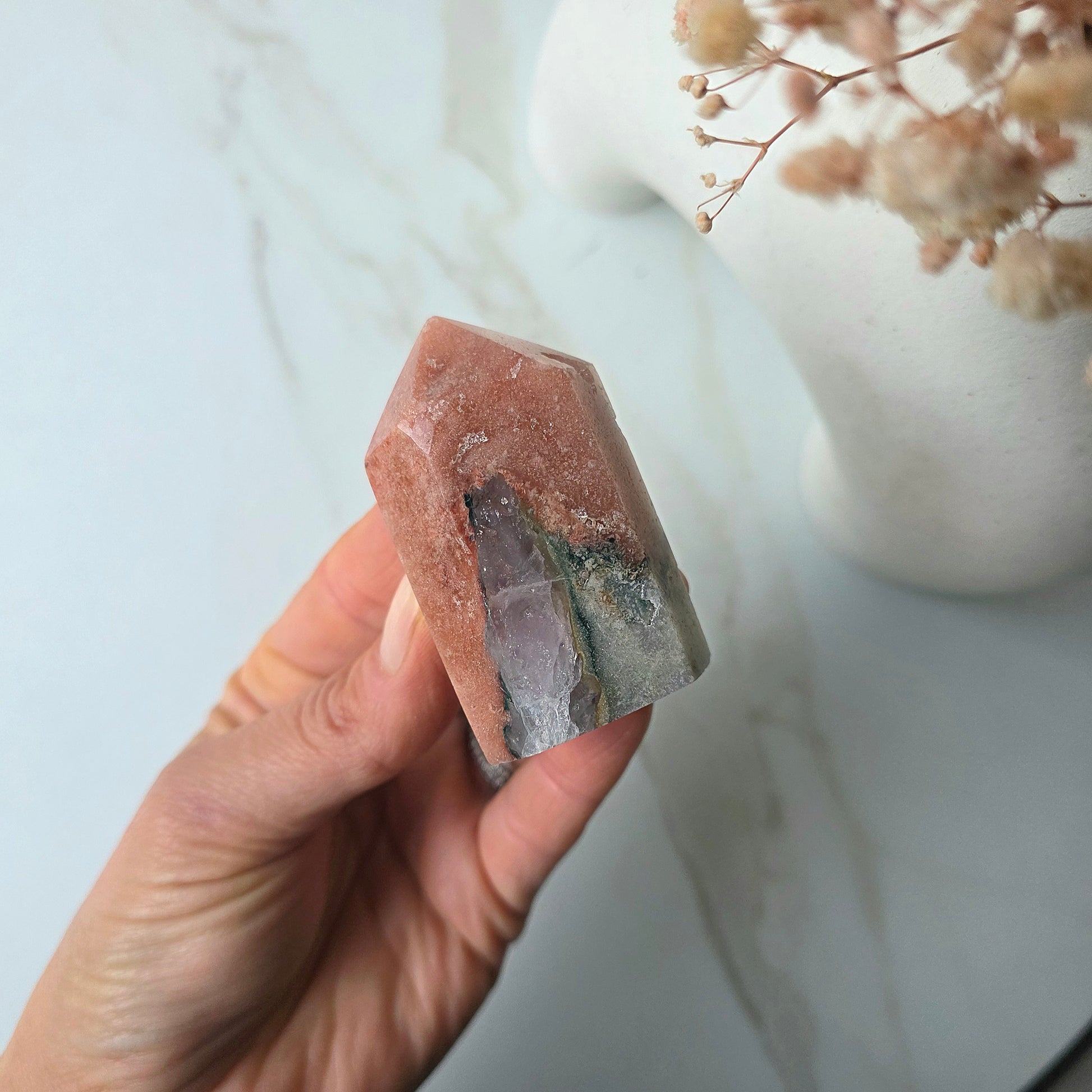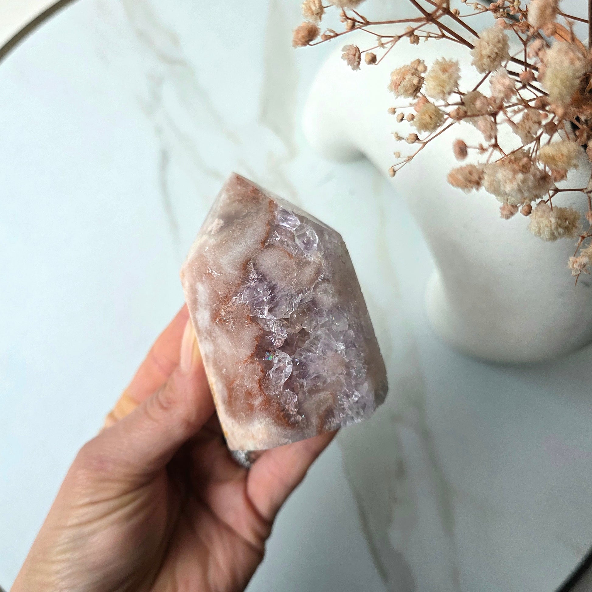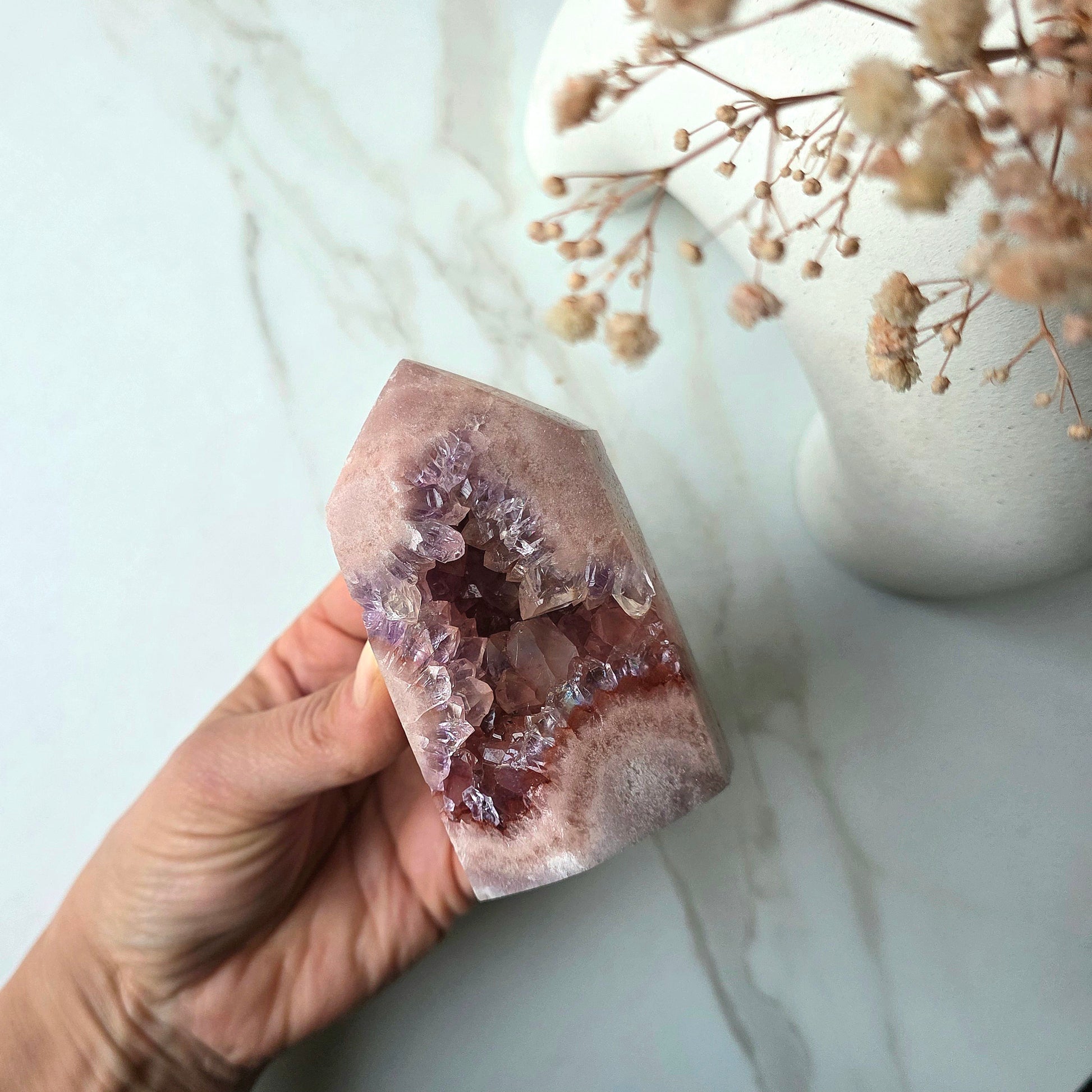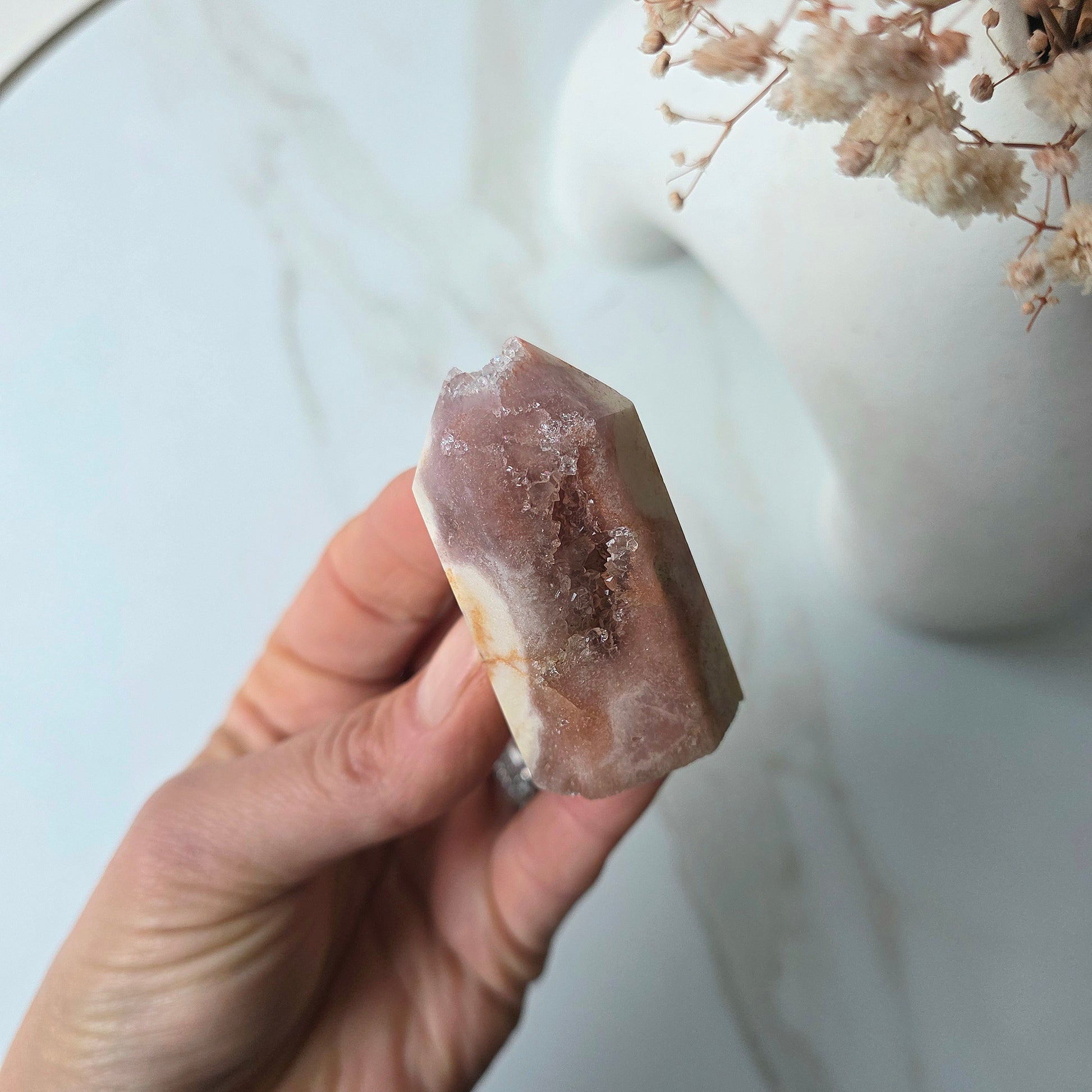 A nurturing stone for inner peace and divine connection, Pink Amethyst encourages emotional balance, spiritual growth, and a deep sense of serenity. It's like a warm hug for your soul—perfect for your bedside, self-care rituals, or moments when you need to feel held by something greater.