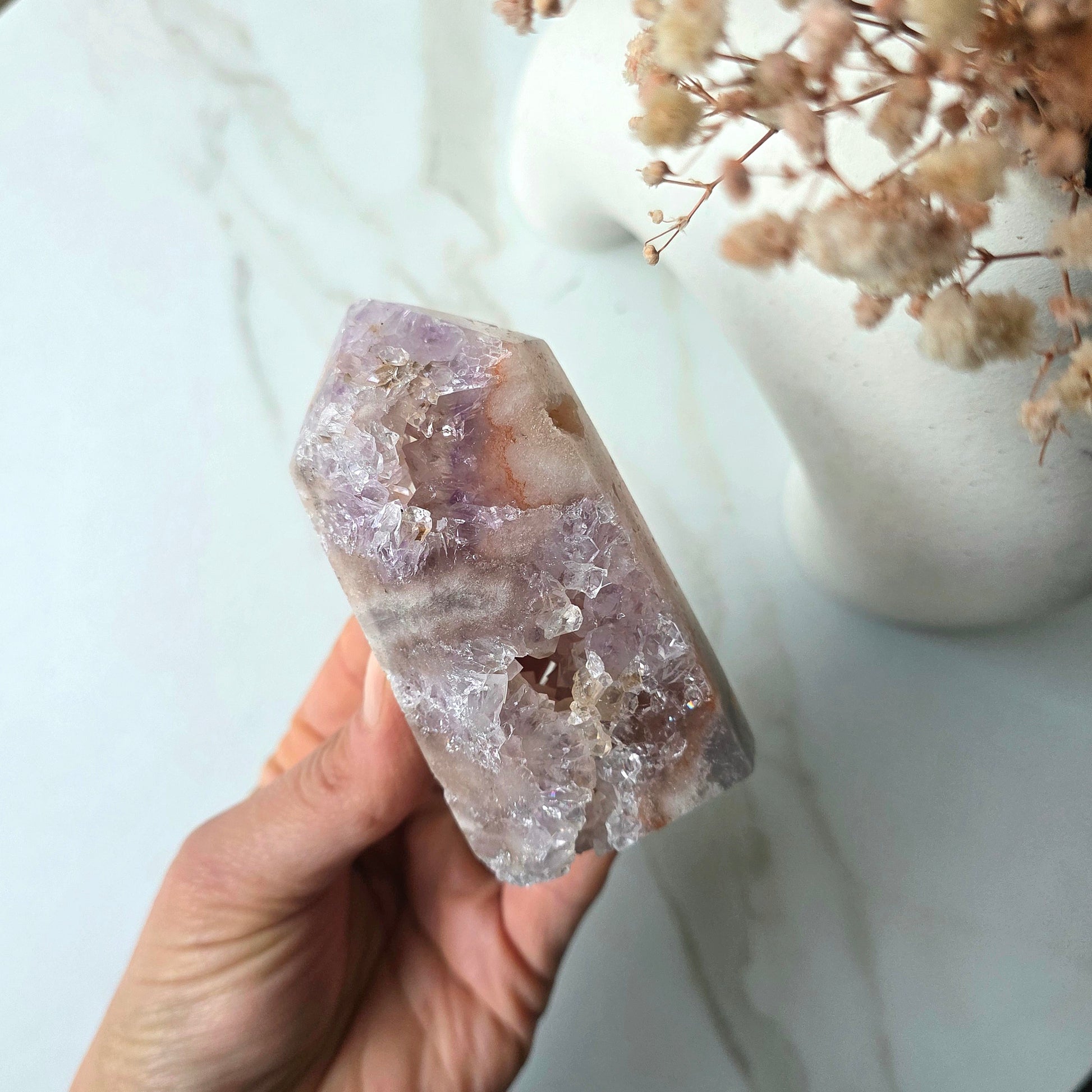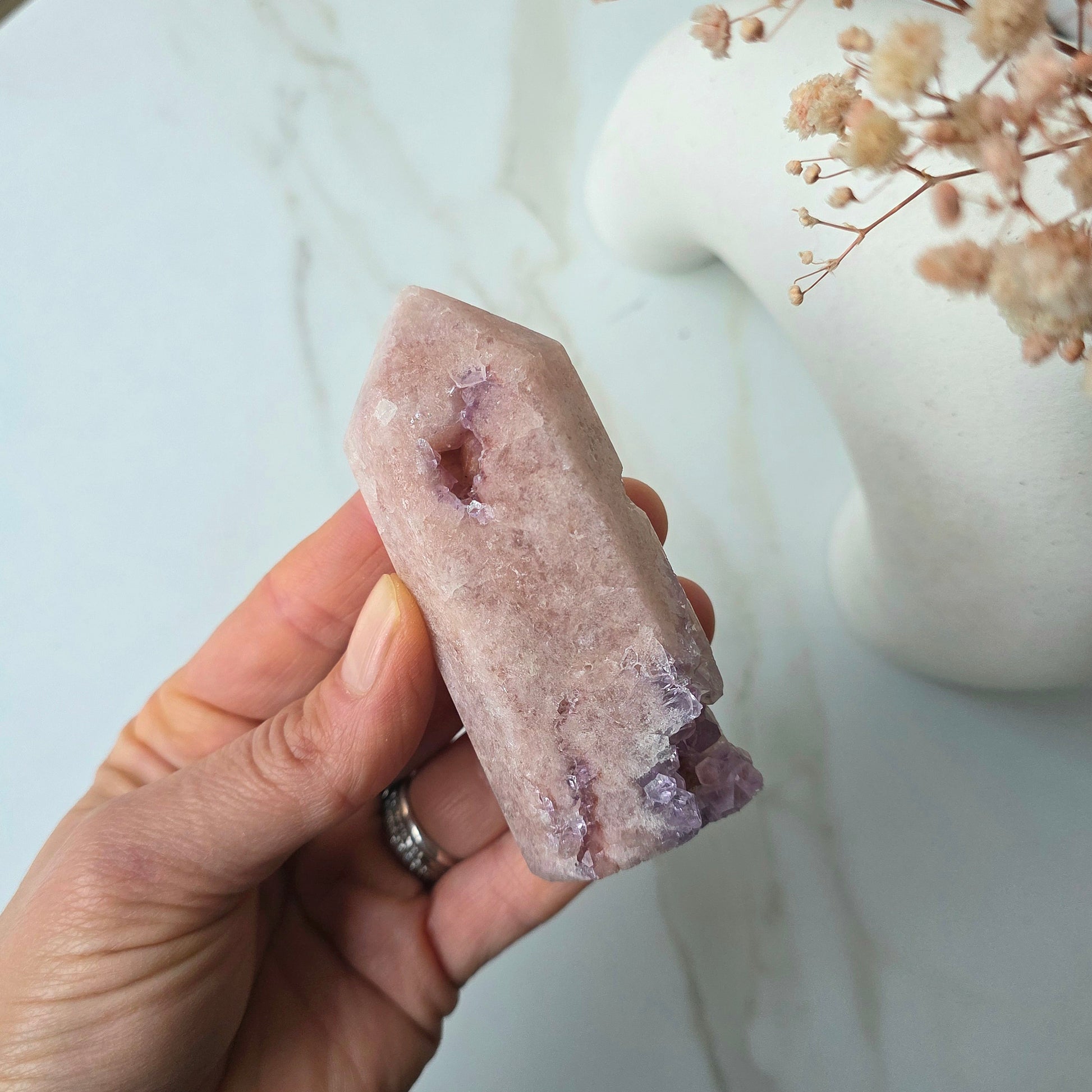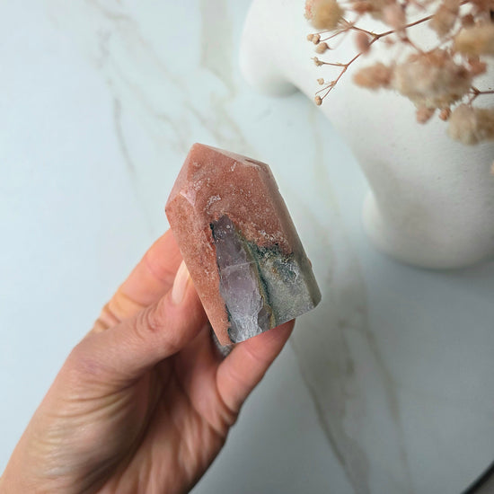 Delicate yet powerful, Pink Amethyst is a heart-soothing crystal that radiates gentle, loving energy. With its dreamy blush tones and calming vibrations, this rare beauty helps you release emotional wounds, soften self-talk, and open your heart to love—starting with yourself.