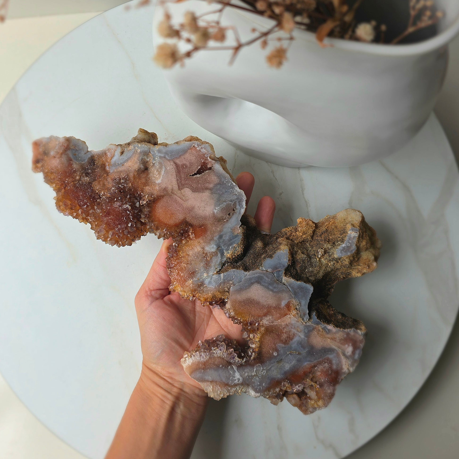 Pink Amethyst carries a soft, feminine energy that calms the mind, eases stress, and supports emotional balance. Its peaceful frequency makes it ideal for bedrooms, meditation spaces, and any corner of your home where you desire comfort, clarity, and serenity. Each piece radiates a dreamy, comforting warmth — a reminder to slow down, breathe deeply, and reconnect with your heart.