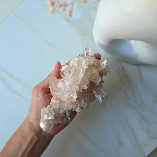 High among the Himalayan peaks, these rare crystals are lovingly unearthed by hand by local artisans who honour the sacred land they come from. Every piece is carefully gathered without machinery, preserving the earth’s natural rhythm and the crystal’s pure vibration. This mindful and ethical process ensures each cluster carries not only the energy of the mountains — but also the love, respect, and intention of the people who bring them to life.
