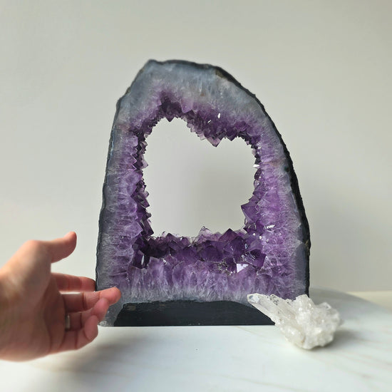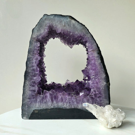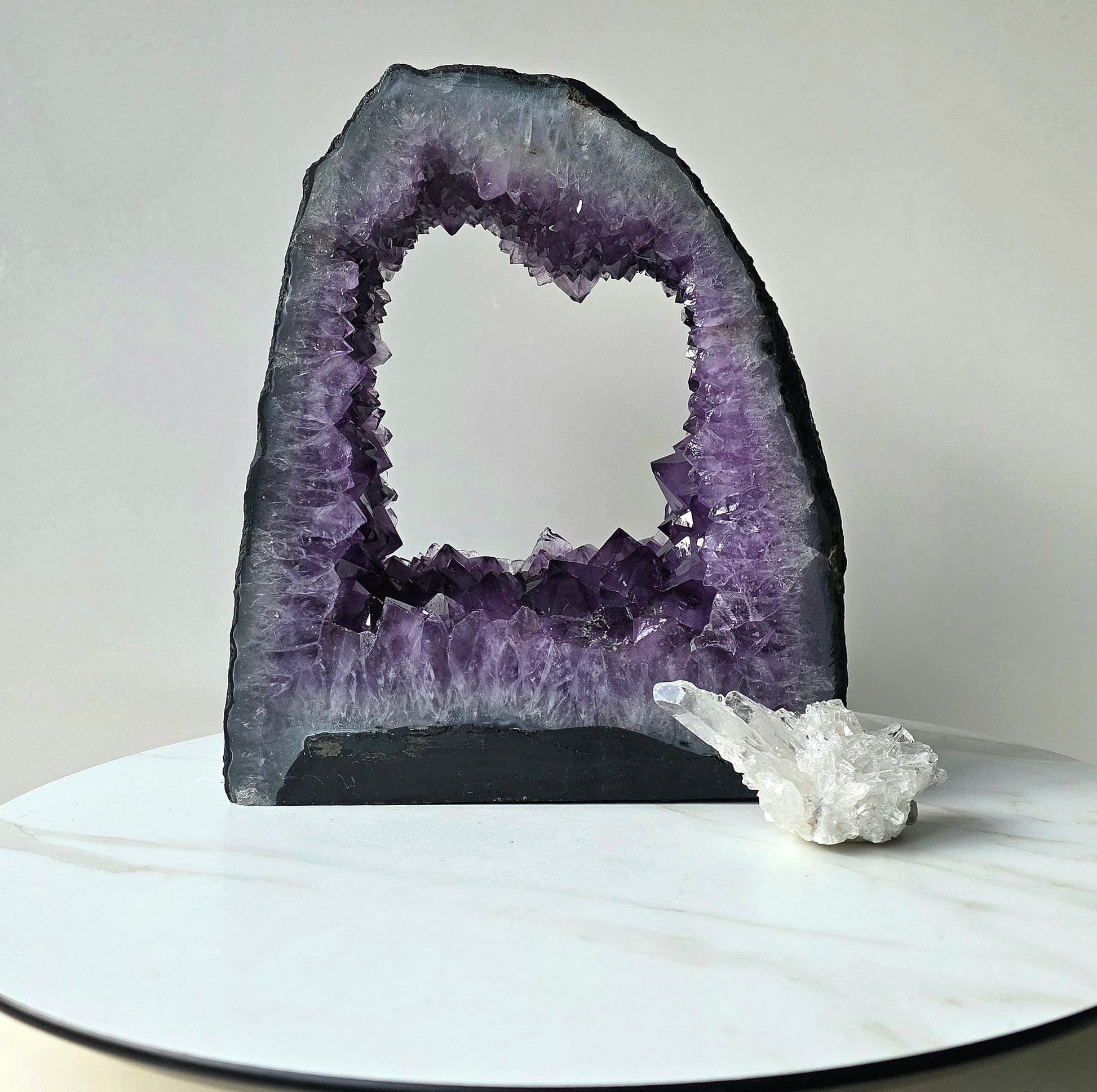 This powerful portal formation symbolizes a bridge between the physical and spiritual worlds — amplifying your intentions, cleansing your aura, and inviting harmony into your space. Each natural point shimmers with violet light, creating a sacred point of energy where balance and magic meet.