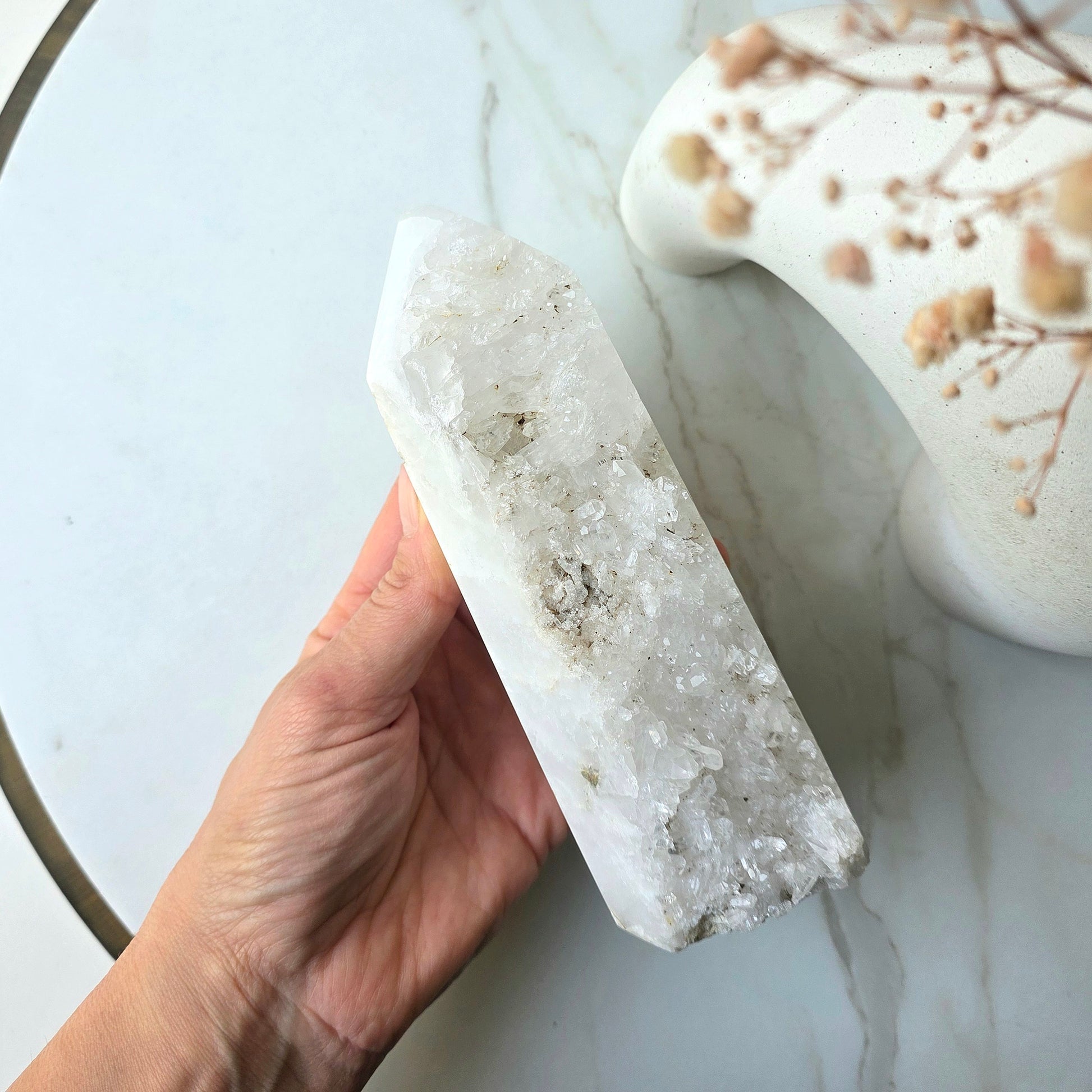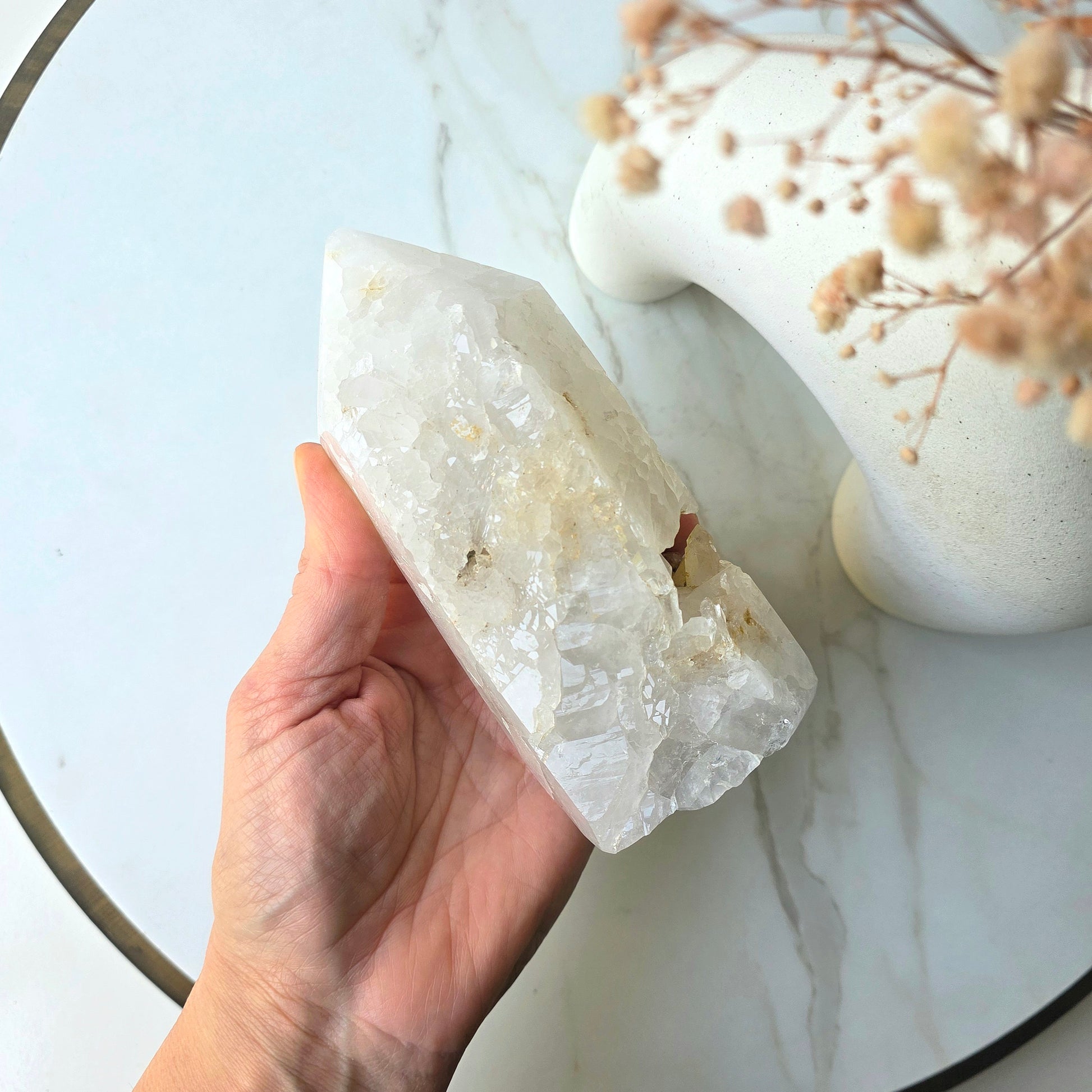 Clear quartz can be used for all conditions, emotional, mental and Psychic aiding in clarity, blockages and healing.