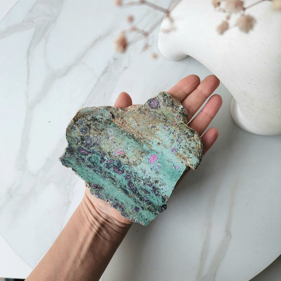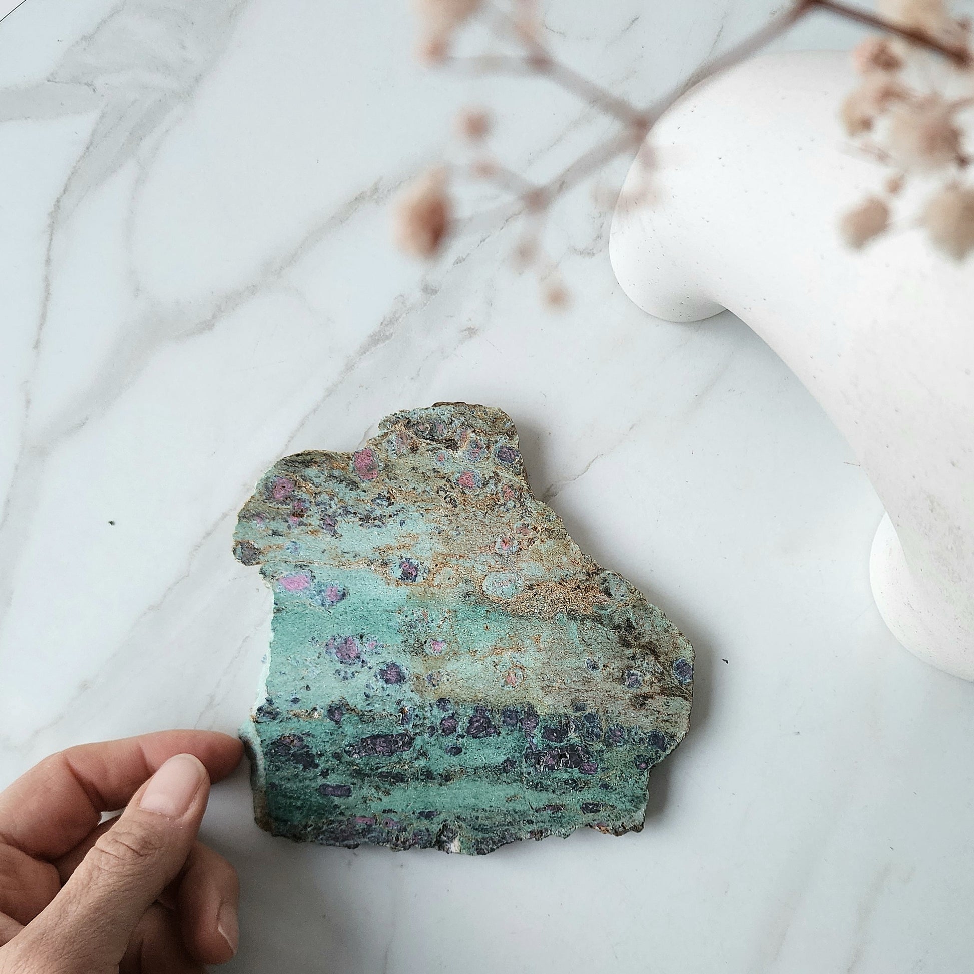 Ruby in Zoisite is known for its potent metaphysical characteristics. Some believe it aids individuals in understanding themselves by shedding guilt and negative emotions. Others view it as a mental reset, capable of refocusing the mind on its objectives after an interruption.