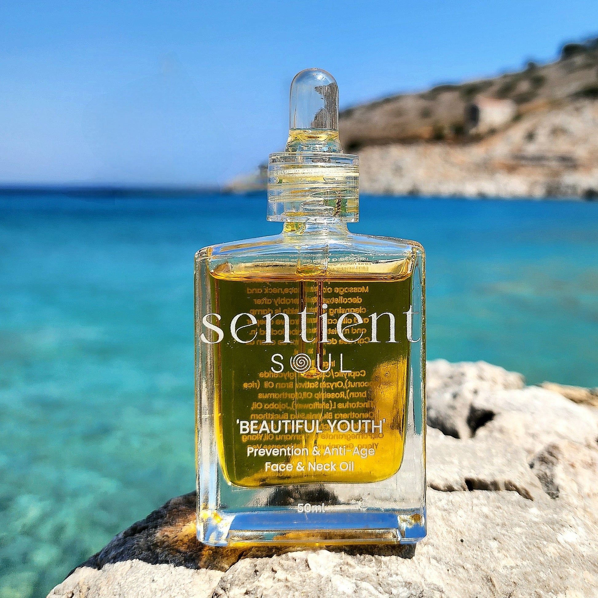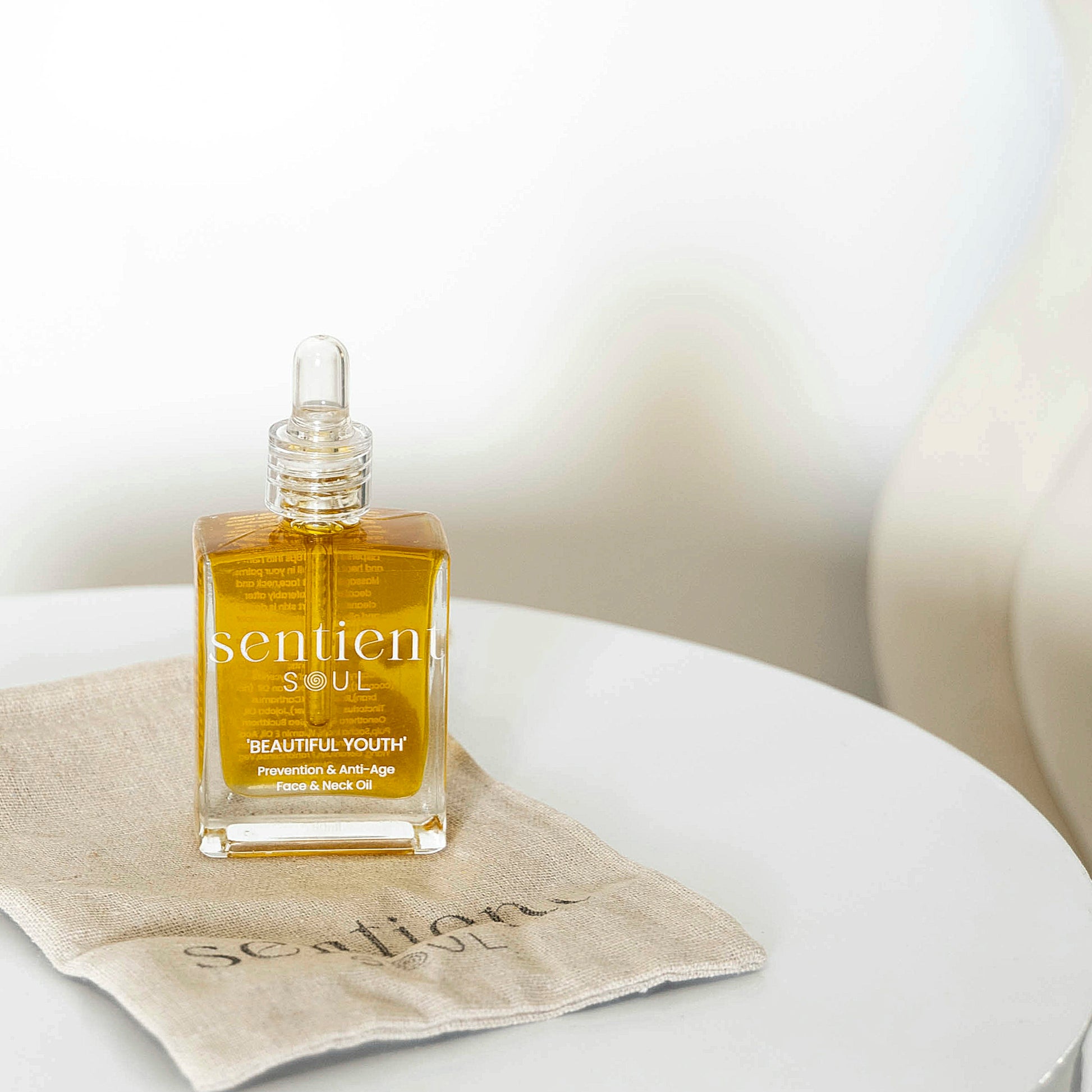 Apply Sentient Soul 'Beautiful Youth Oil' day and night. Drop a small amount into palms and Massage into cleansed skin in an upward motion starting from your neck sweeping up to your forehead. Best applied to slightly damp skin for better absorption.