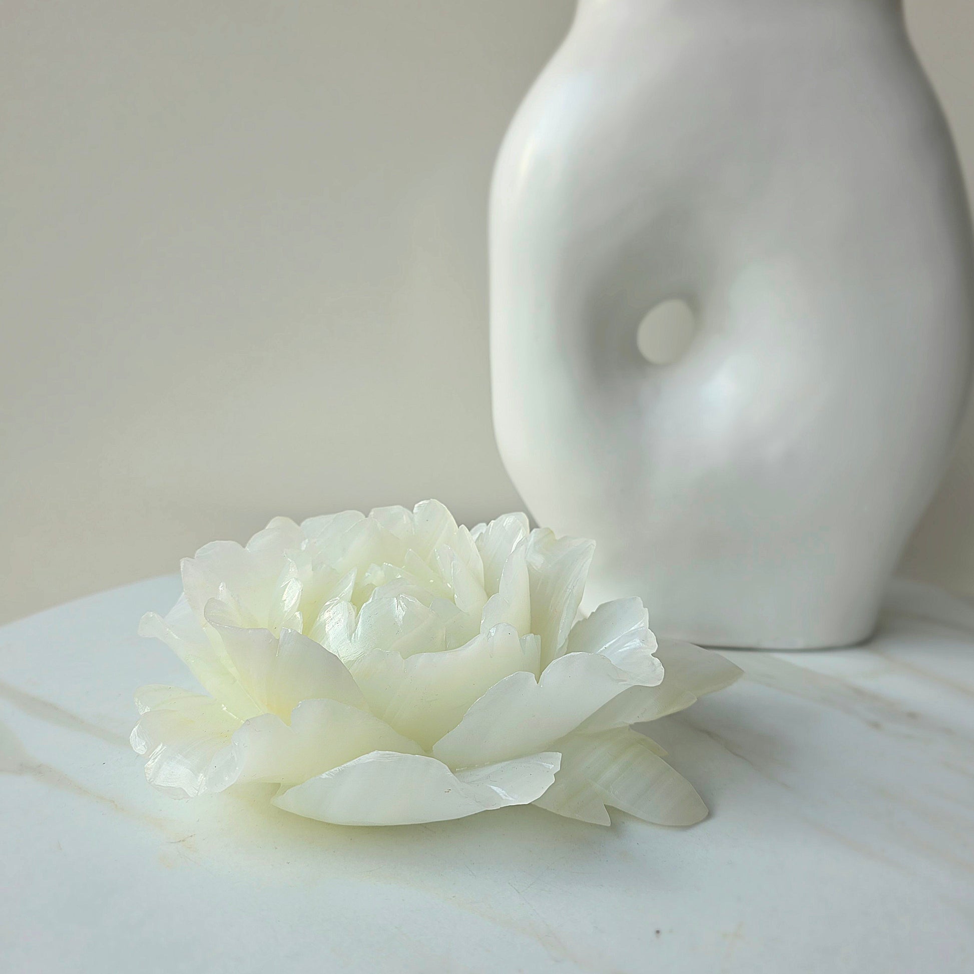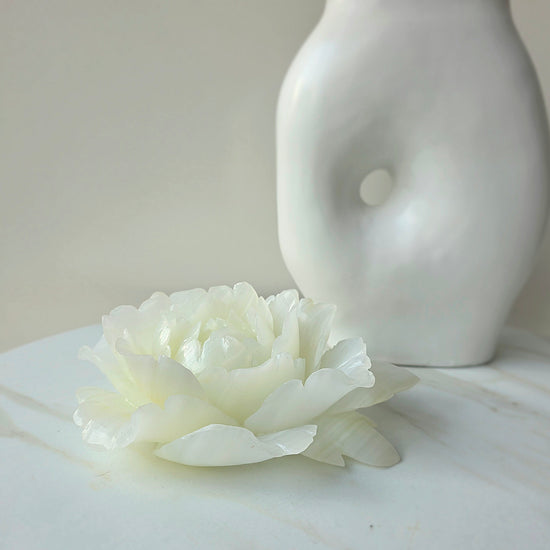 Introduce soft, serene beauty into your space with this exquisite White Onyx Rose. Hand-carved from premium White Onyx, each rose blooms with calming, luminous energy—symbolising purity, renewal and gentle emotional healing. Its creamy white tones and natural marbling create an elegant, timeless piece that radiates peace and harmony.