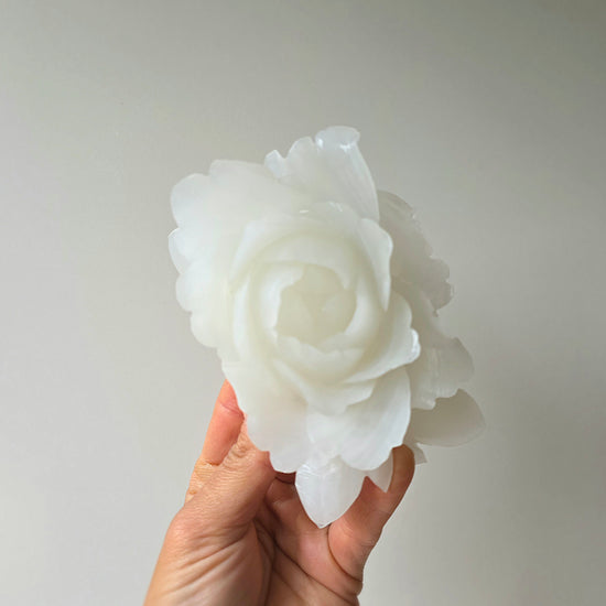 Introduce soft, serene beauty into your space with this exquisite White Onyx Rose. Hand-carved from premium White Onyx, each rose blooms with calming, luminous energy—symbolising purity, renewal and gentle emotional healing. Its creamy white tones and natural marbling create an elegant, timeless piece that radiates peace and harmony.